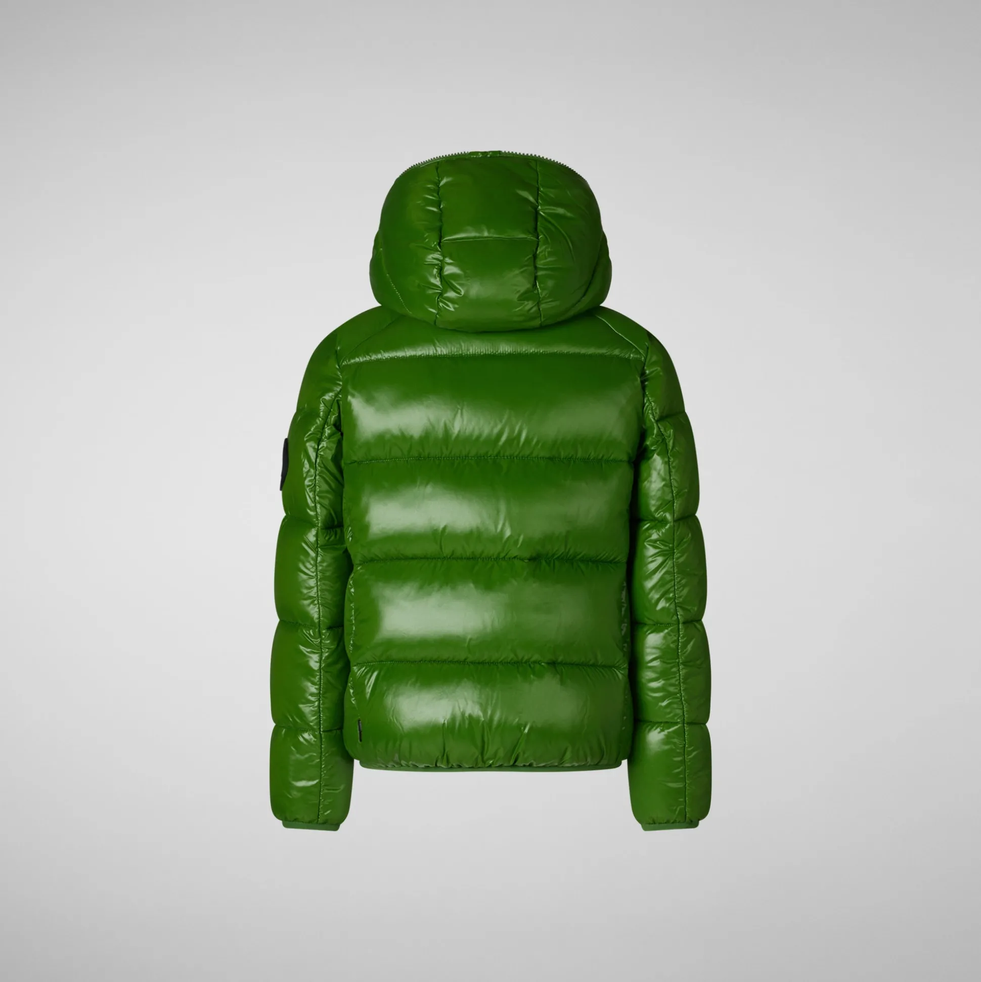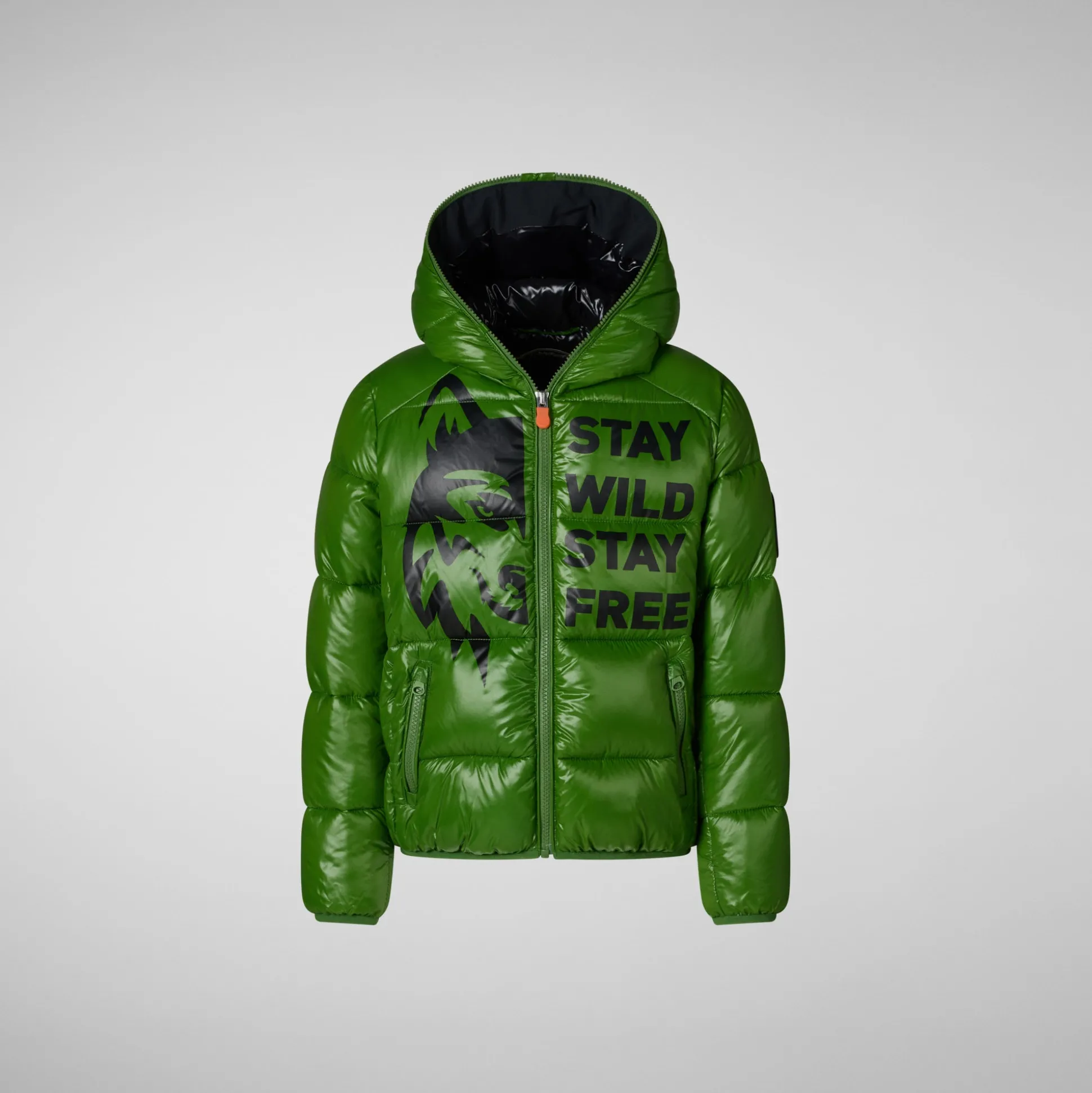 Boys’ animal free Puffer jacket Keegan in grass green wolf print
