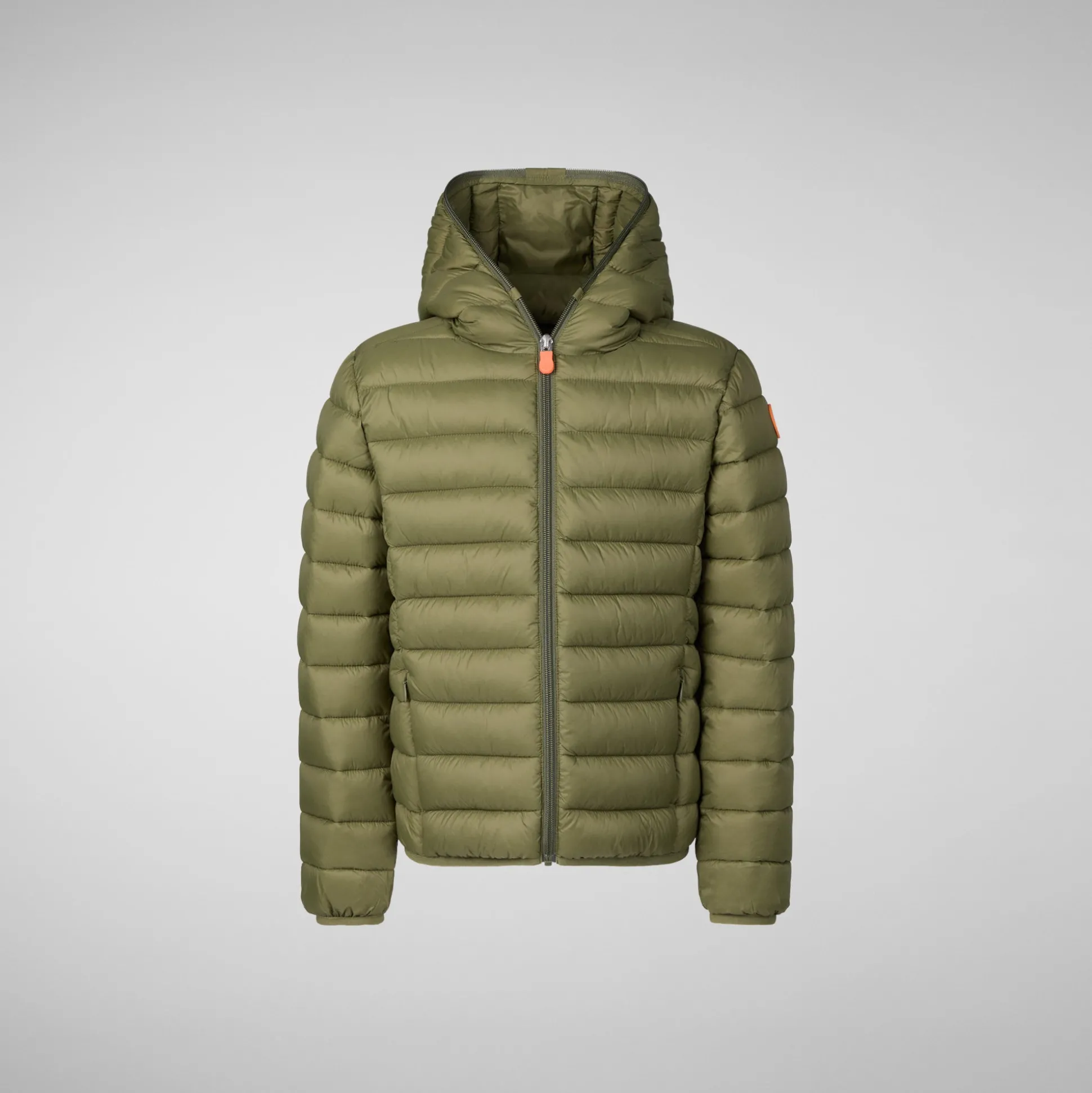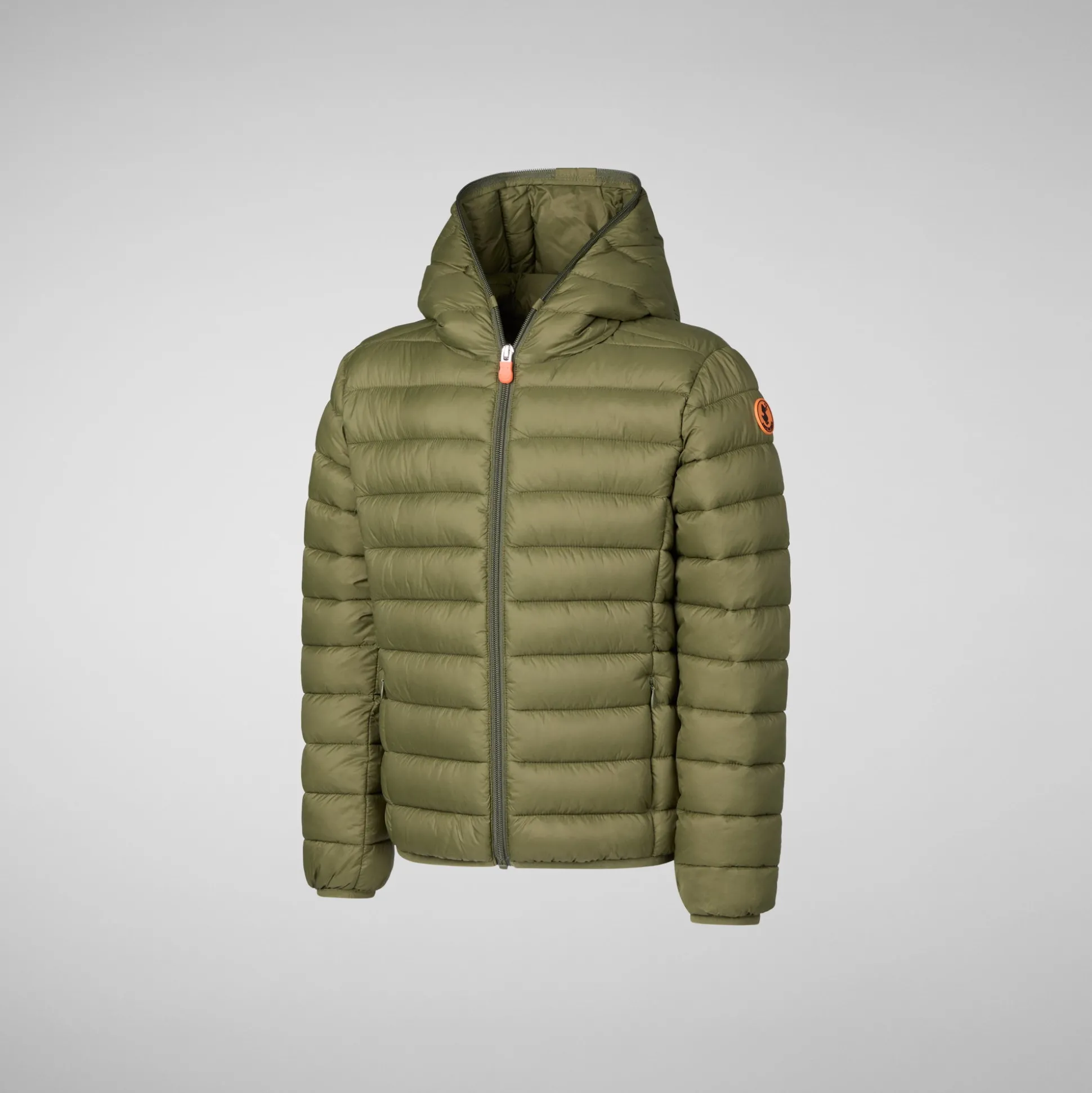 Boys’ Hooded Animal free Puffer Jacket Dony in dusty olive