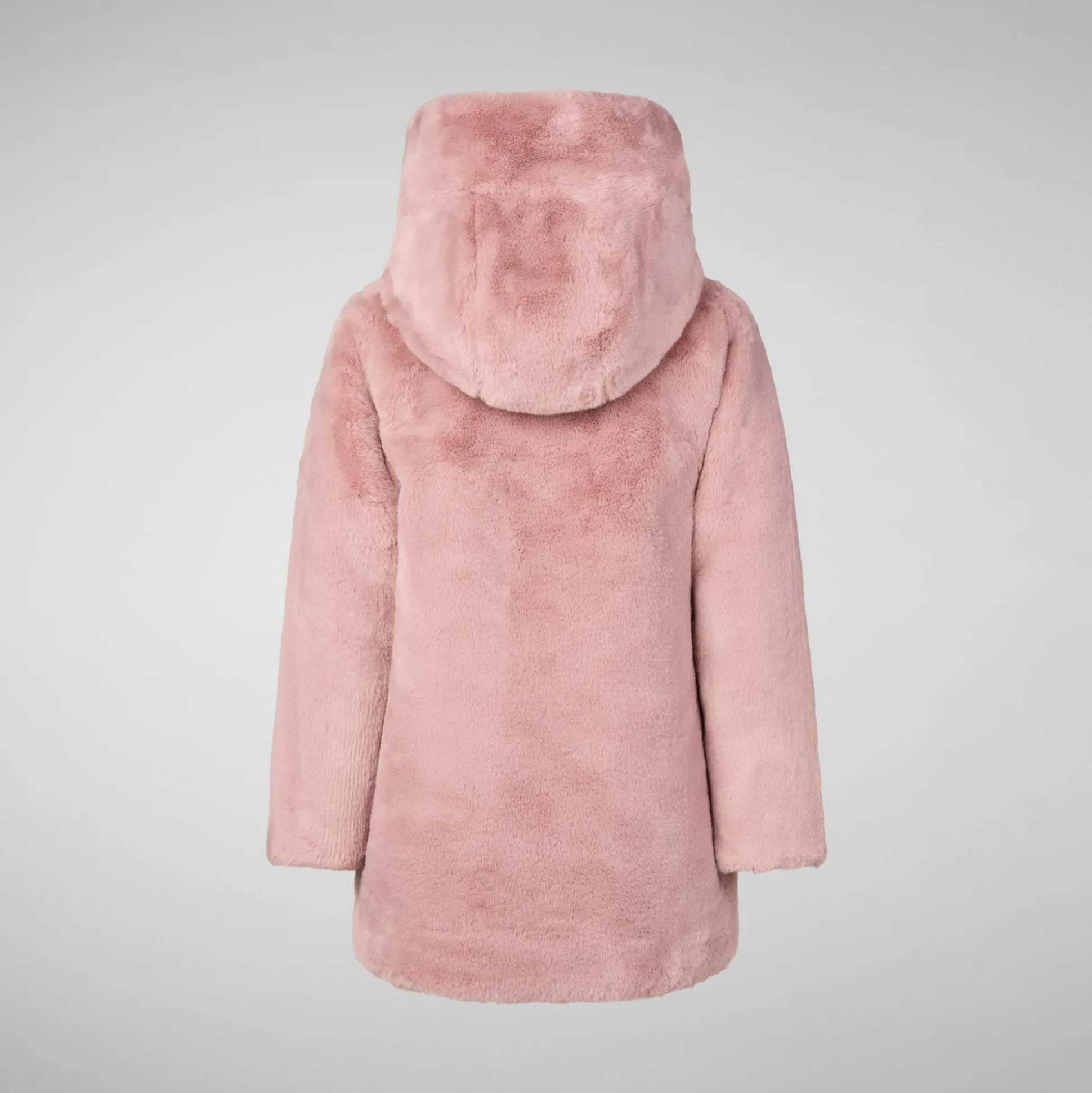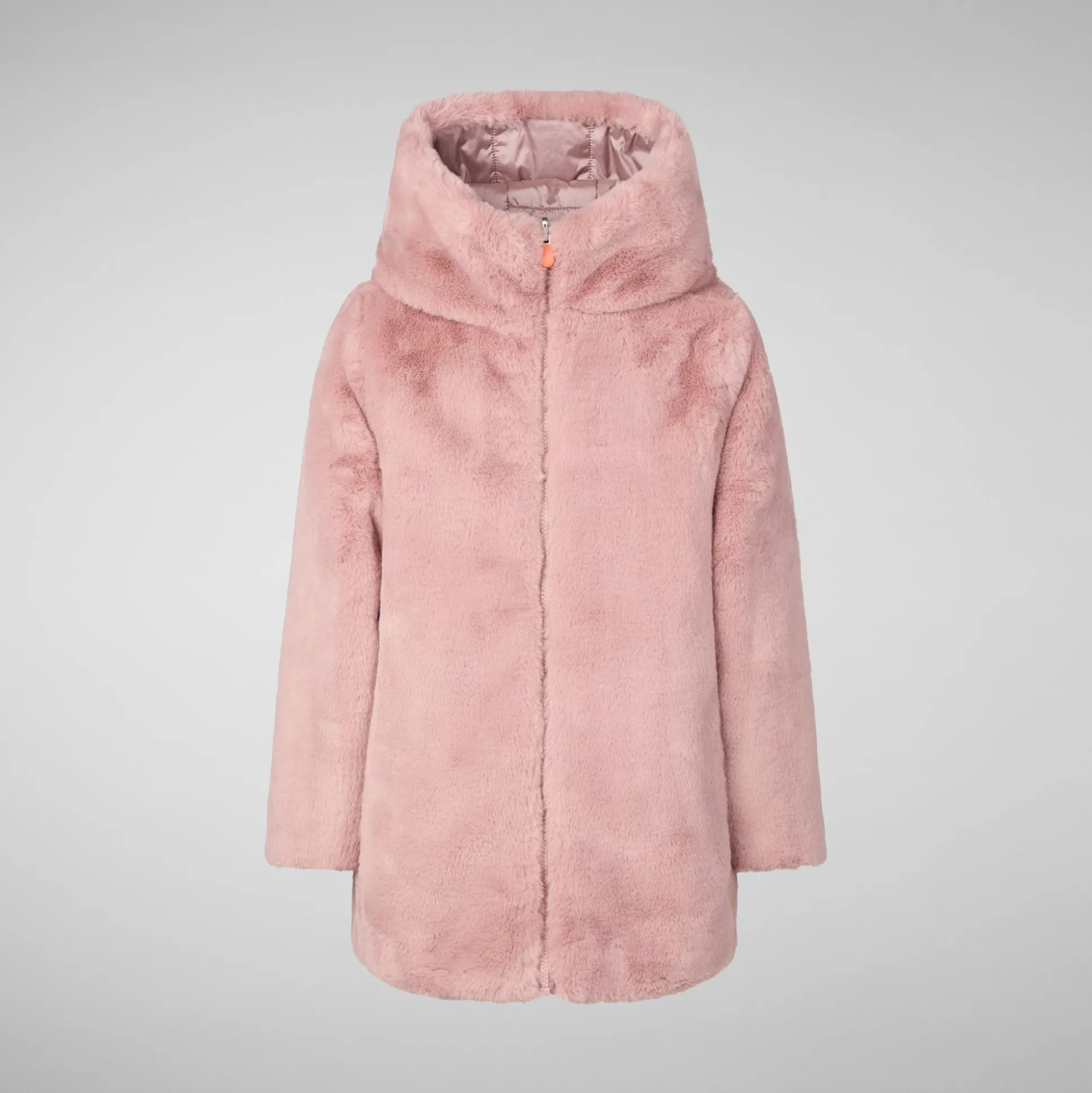 Flora is a reversible hooded coat that offers your little girl two options: one quilted side and another in a plush faux fur made from recycled polyester. It features a central zipper, invisible zipped pockets, and Lycra trims at the hem and cuffs. The round Save The Duck logo on the sleeve provides a fun signature.