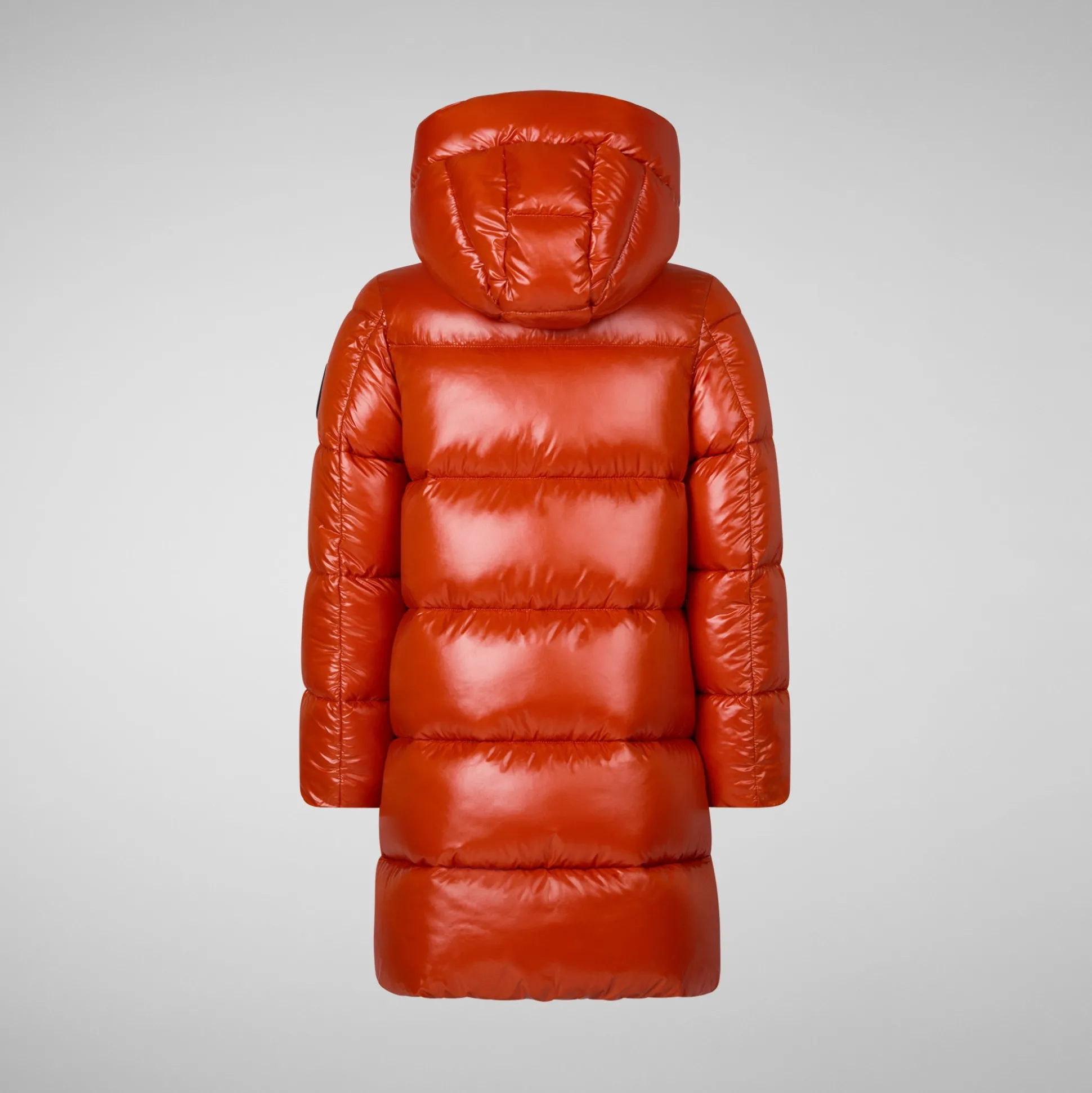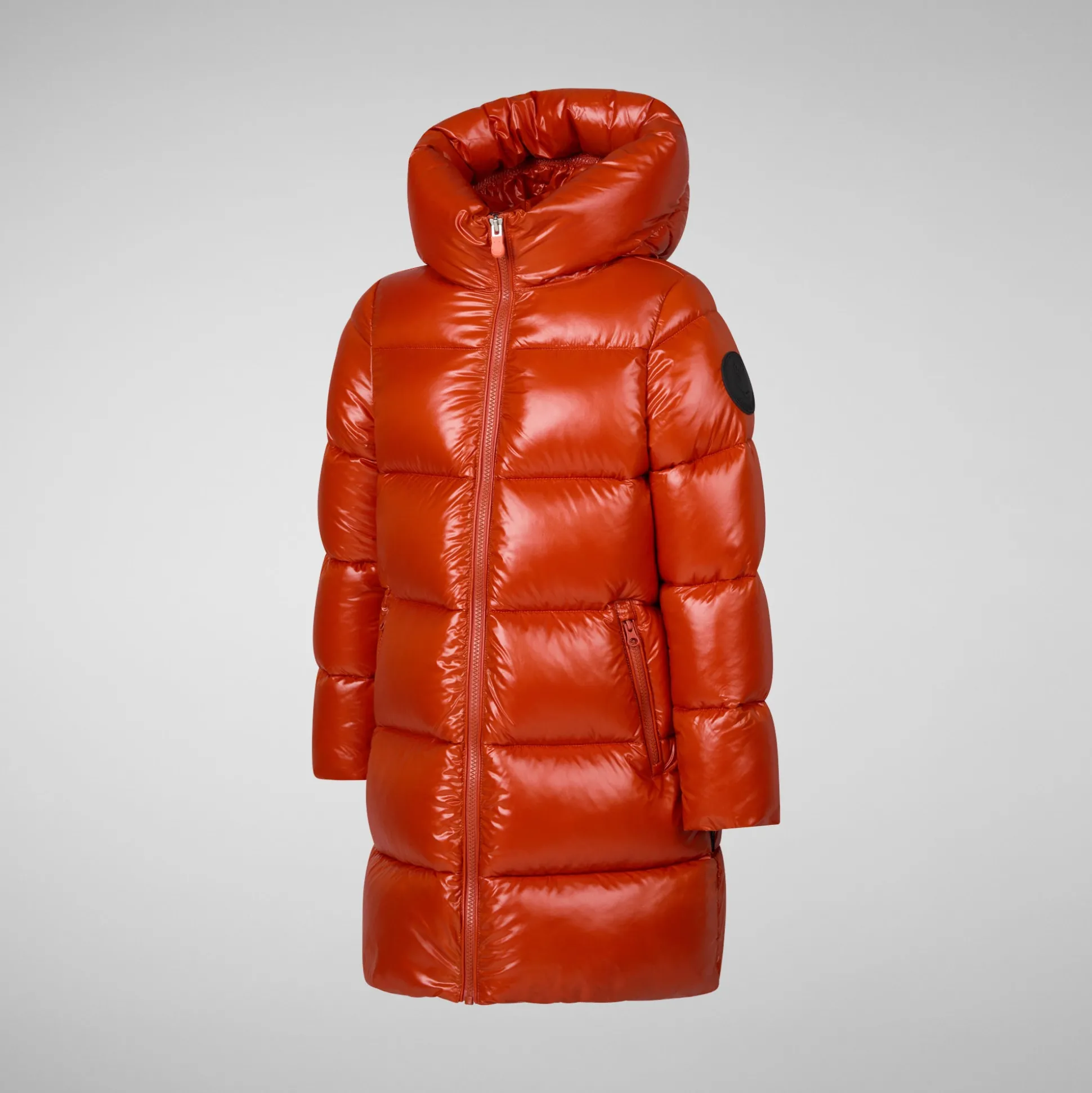 Let your little one refashion the future with our Millie puffer, made from glossy nylon. Shaped to a cute A-line, the design comes with a maxi hood and zipped pockets. Other signature details include the black rubber logo on the sleeve and the orange zip puller.