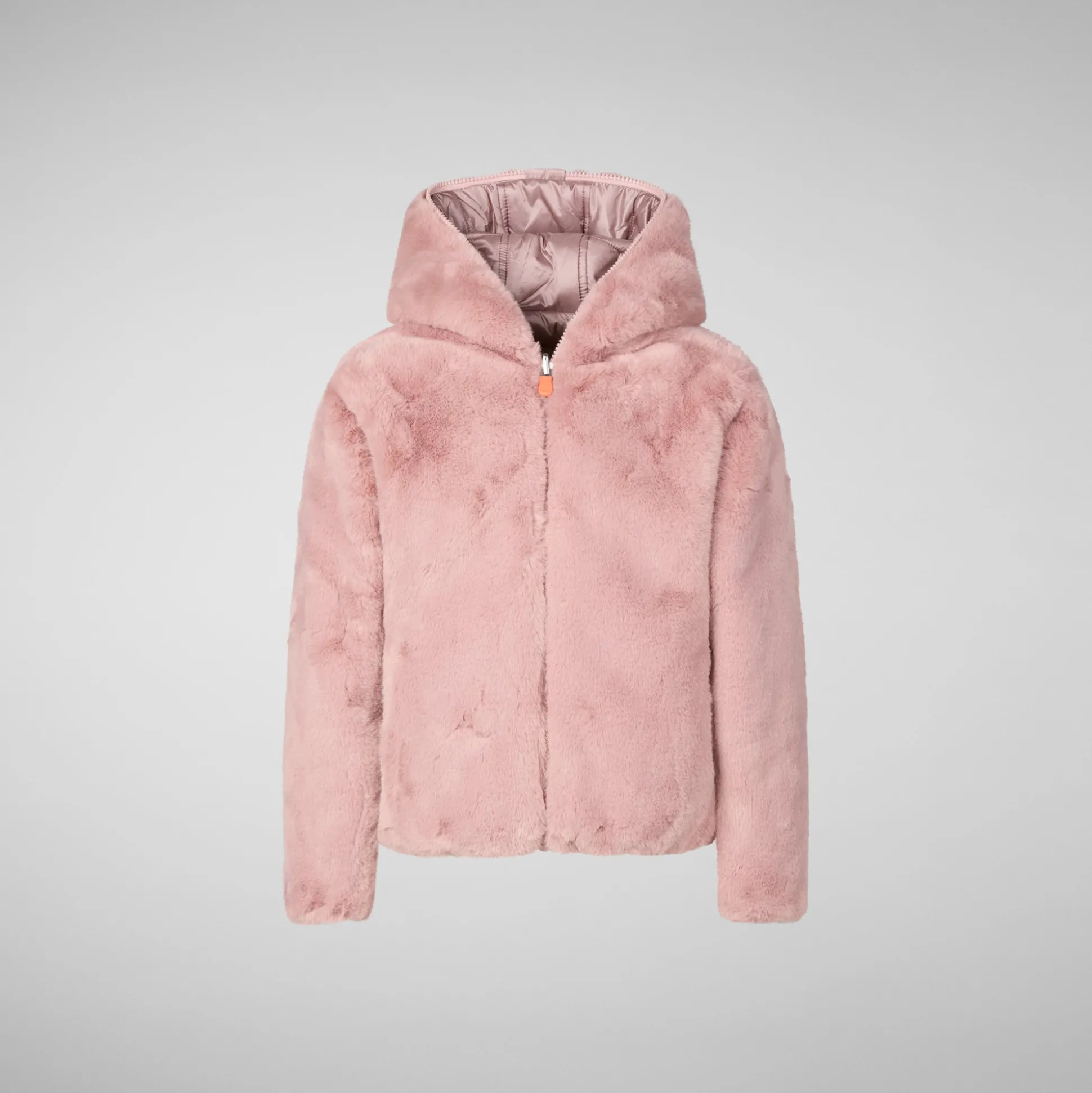 Chloe is a reversible hooded jacket that offers your little girl two options: one quilted side and another in a plush faux fur made from recycled polyester. It features a central zipper, invisible zipped pockets, and Lycra trims at the hem and cuffs. The round Save The Duck logo on the sleeve provides a fun signature.