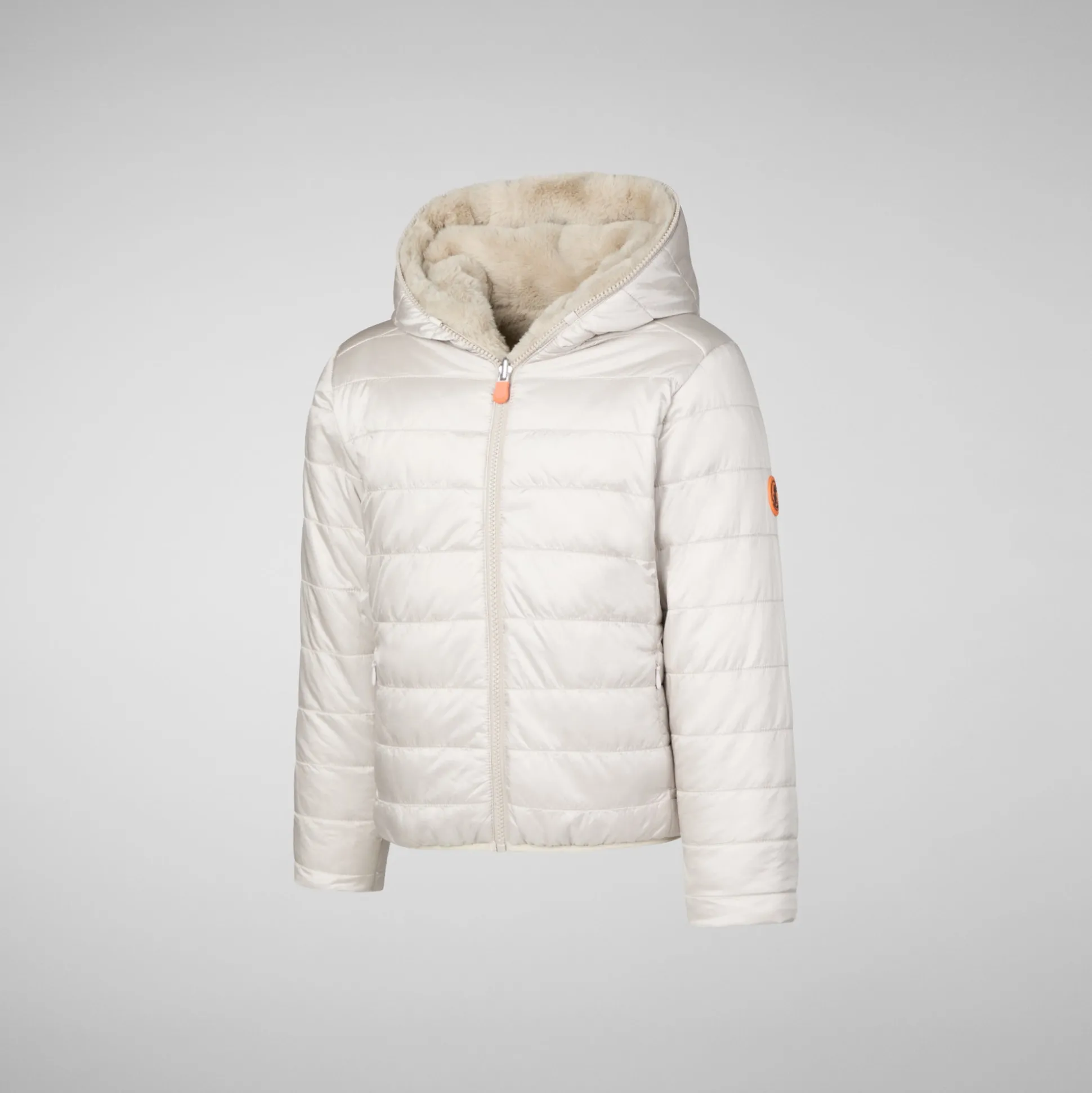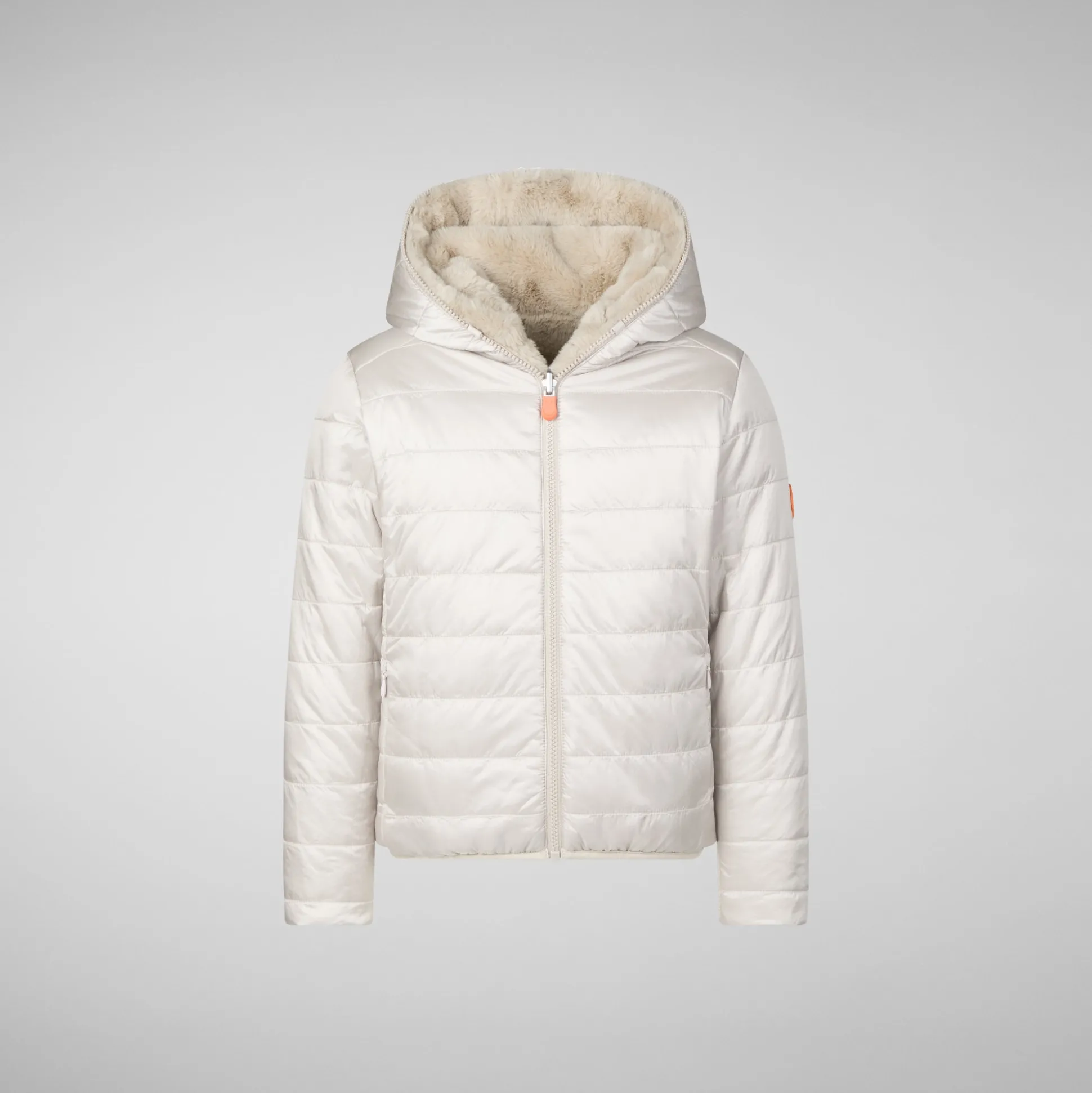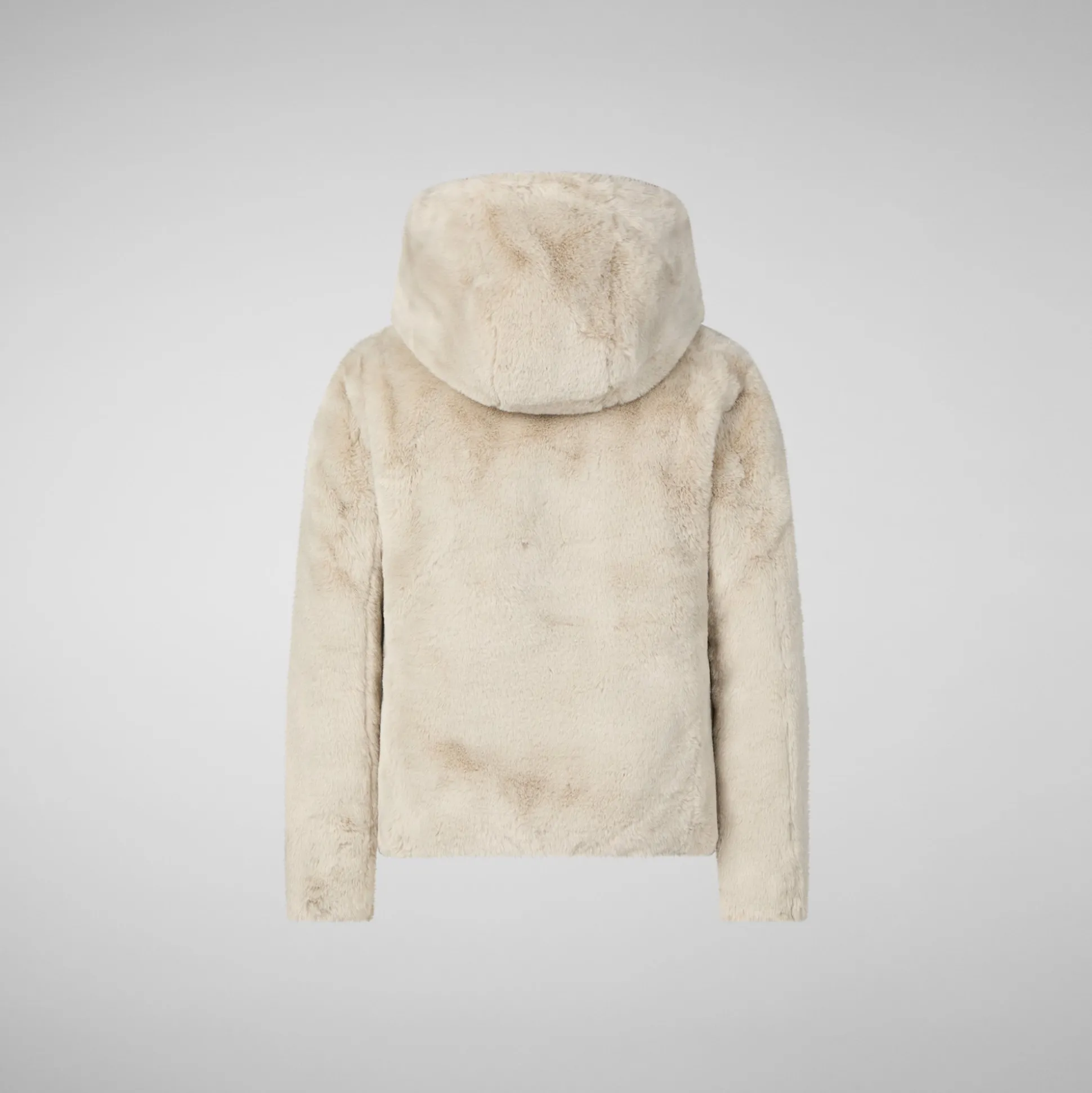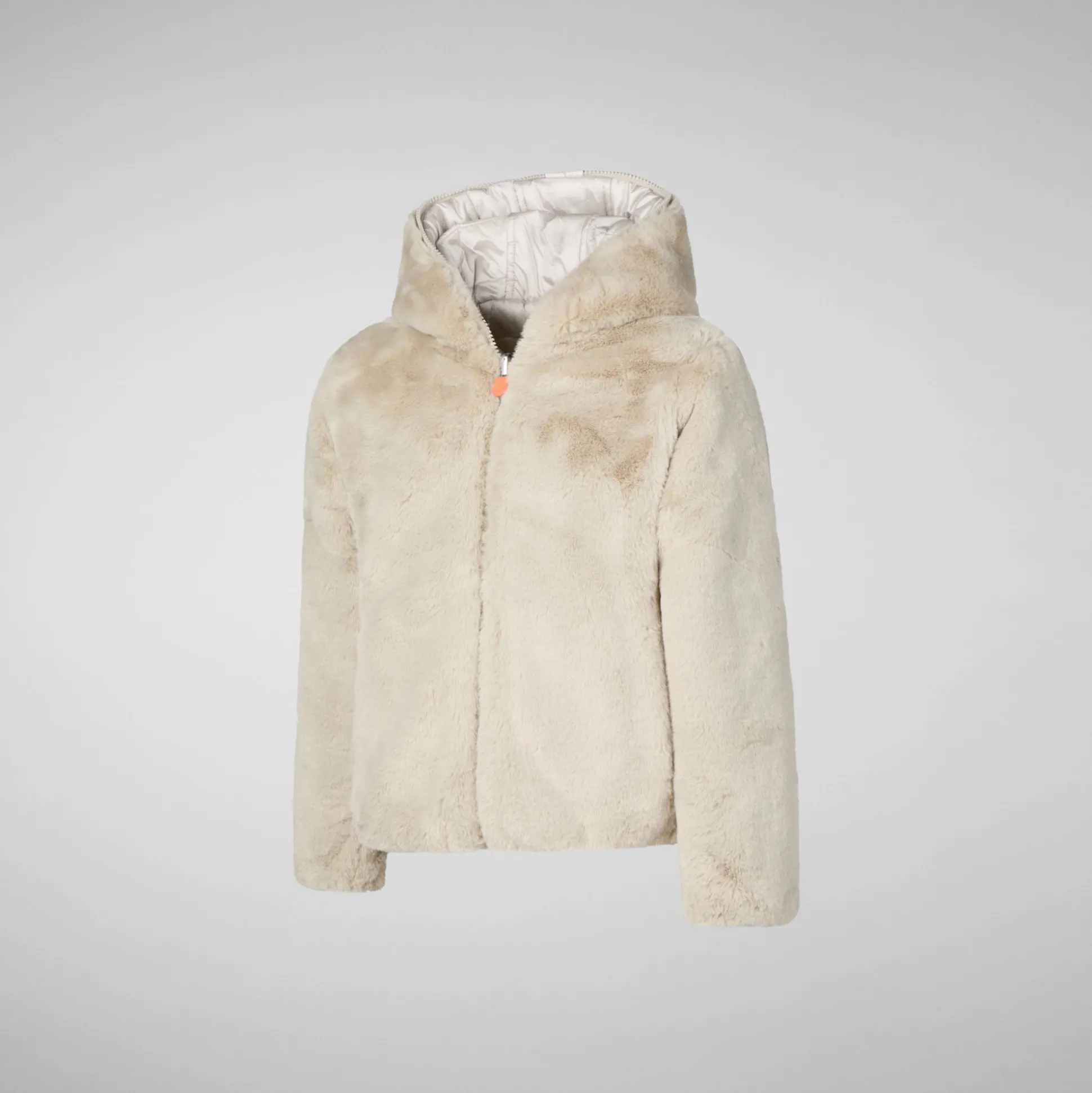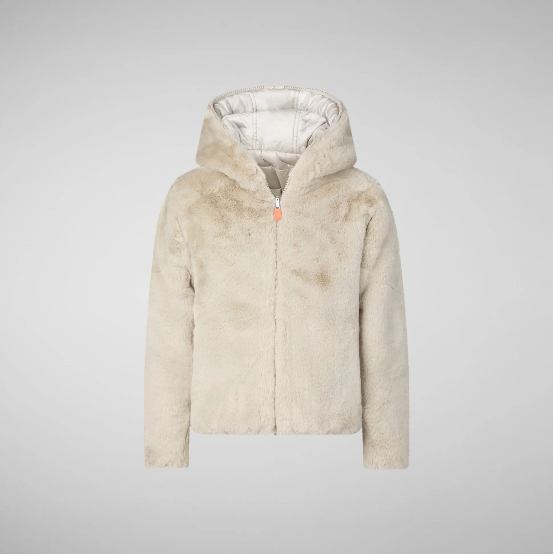 Girls’ hooded reversible jacket Chloe in rainy beige