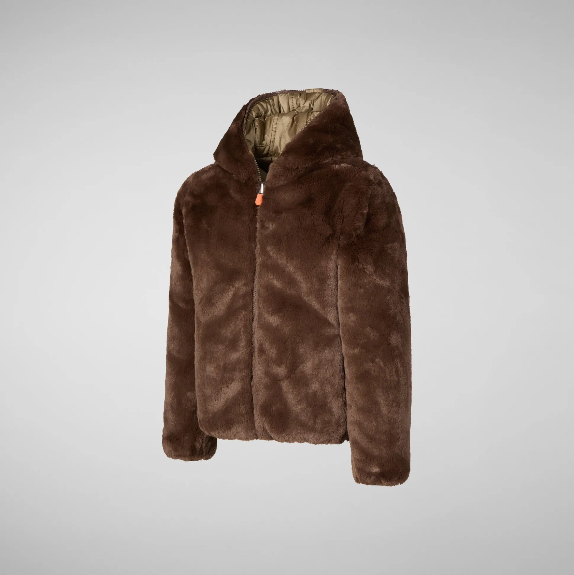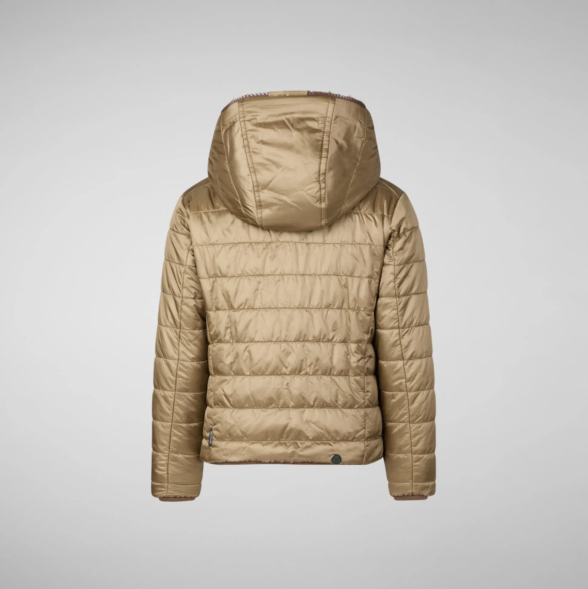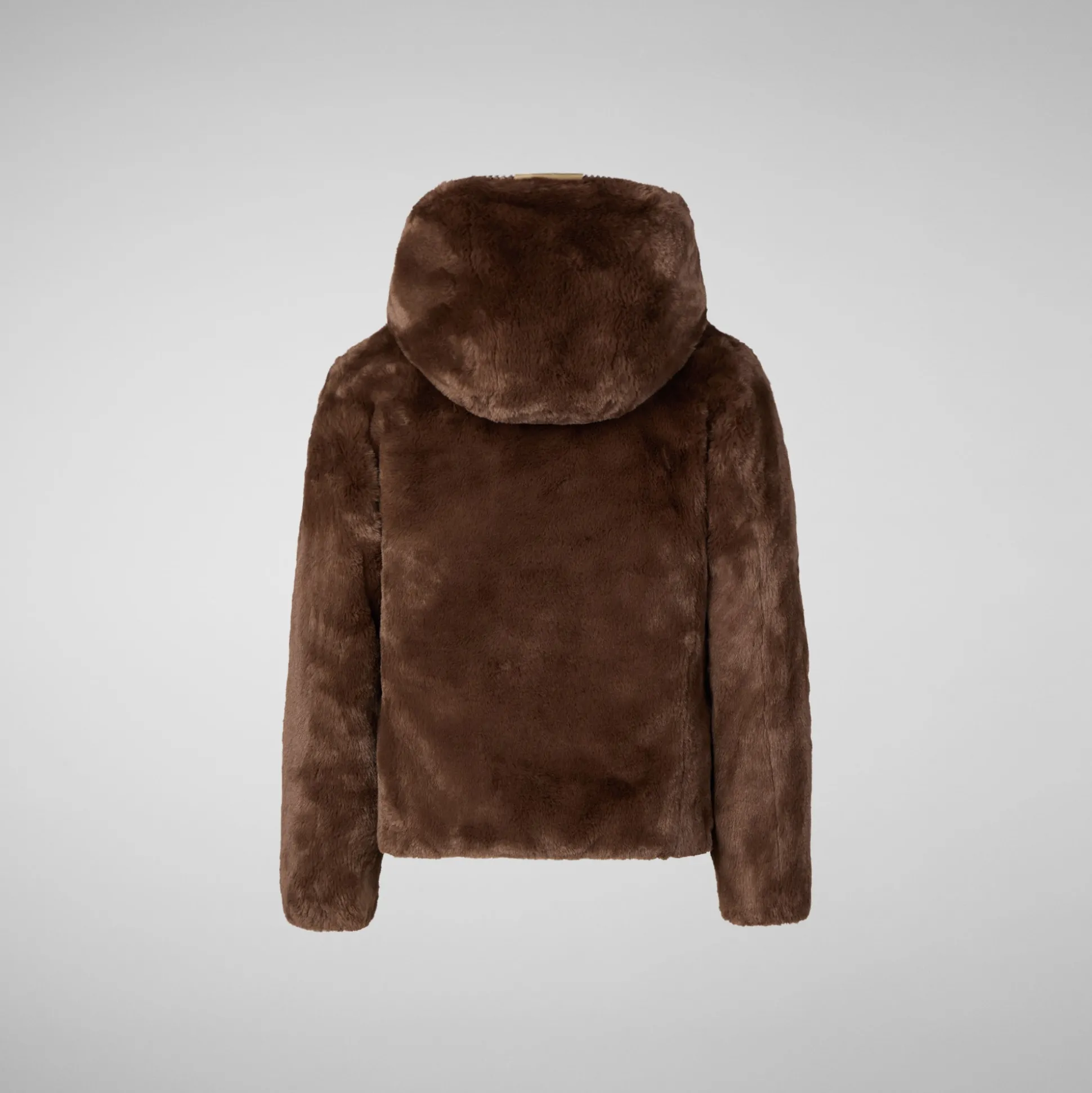 Girls’ hooded reversible jacket Chloe in teddy brown