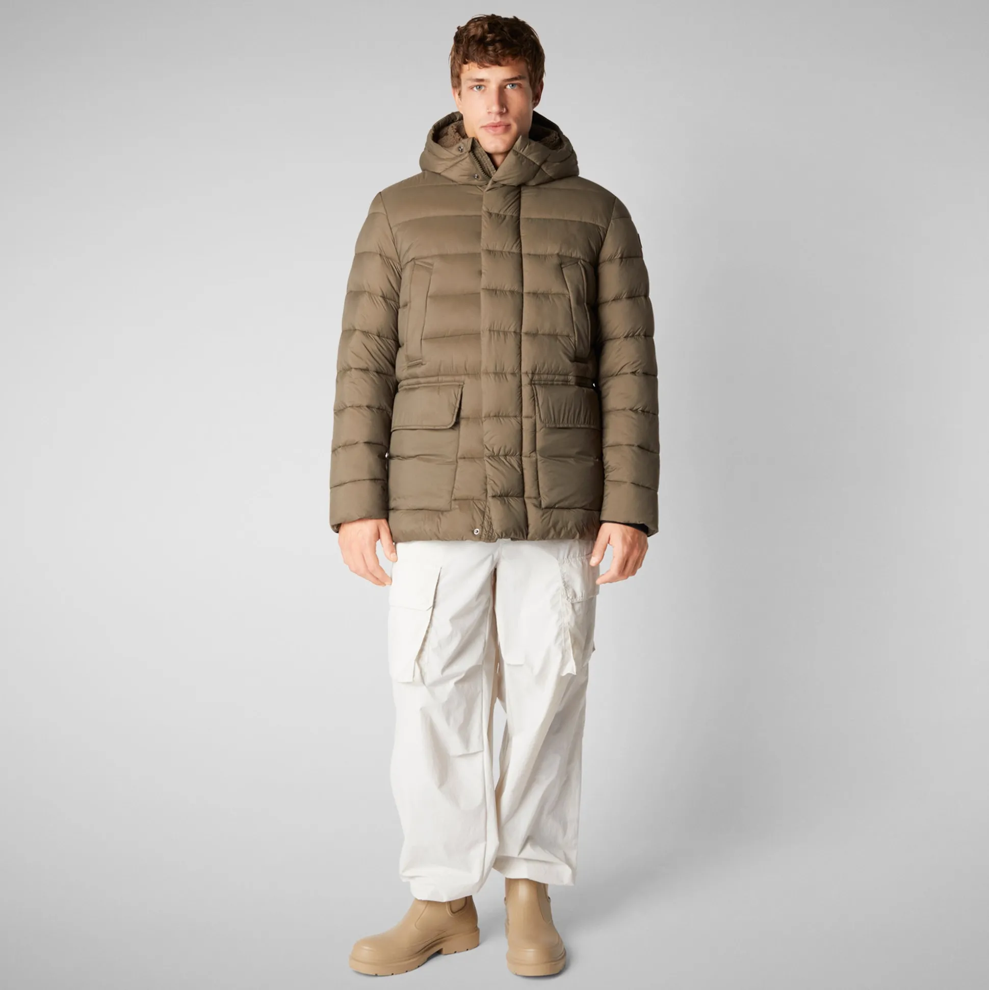 Be the first to review “Men’s animal free hooded Animal free Puffer jacket Lyle in mud grey” Cancel reply