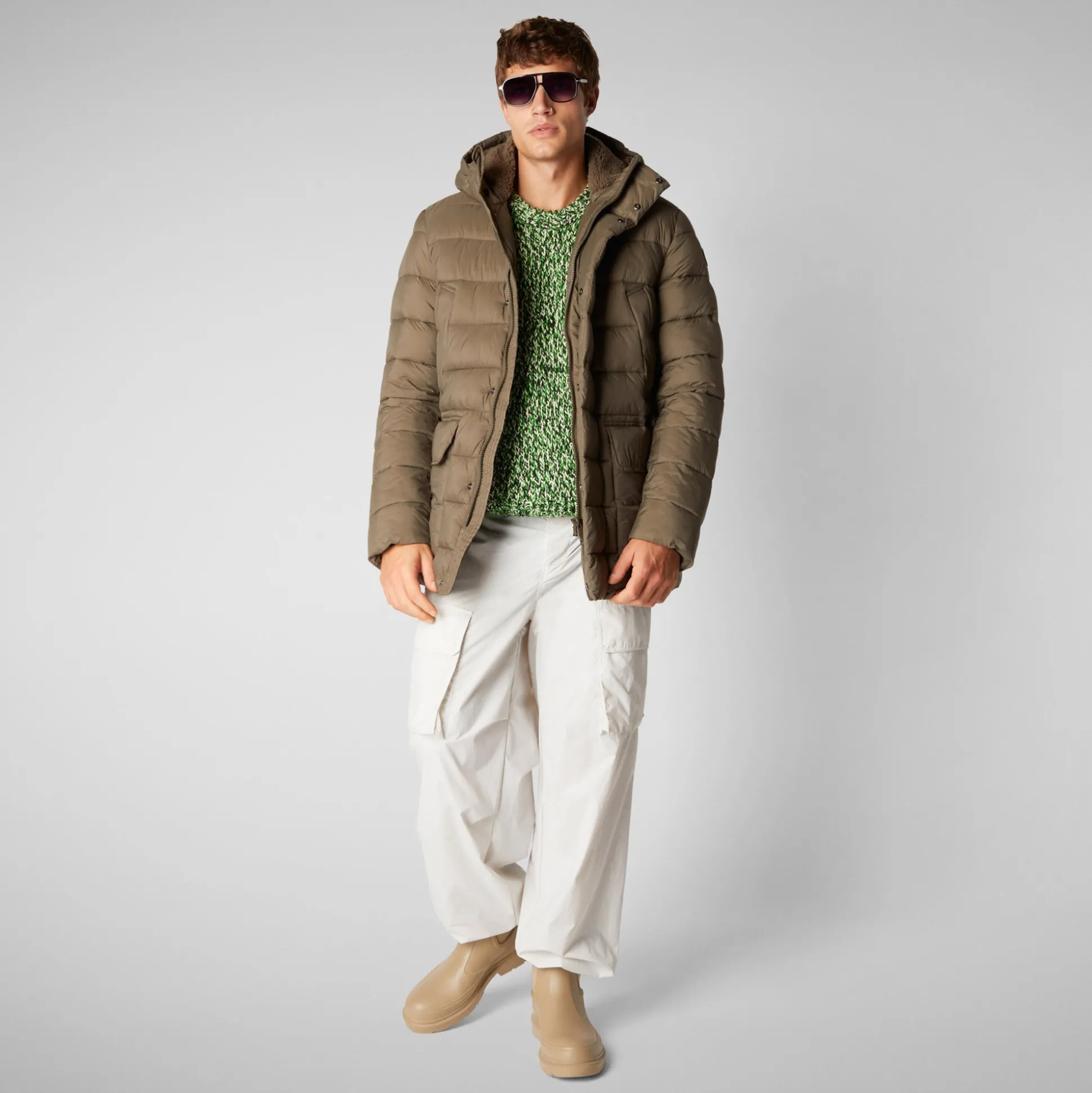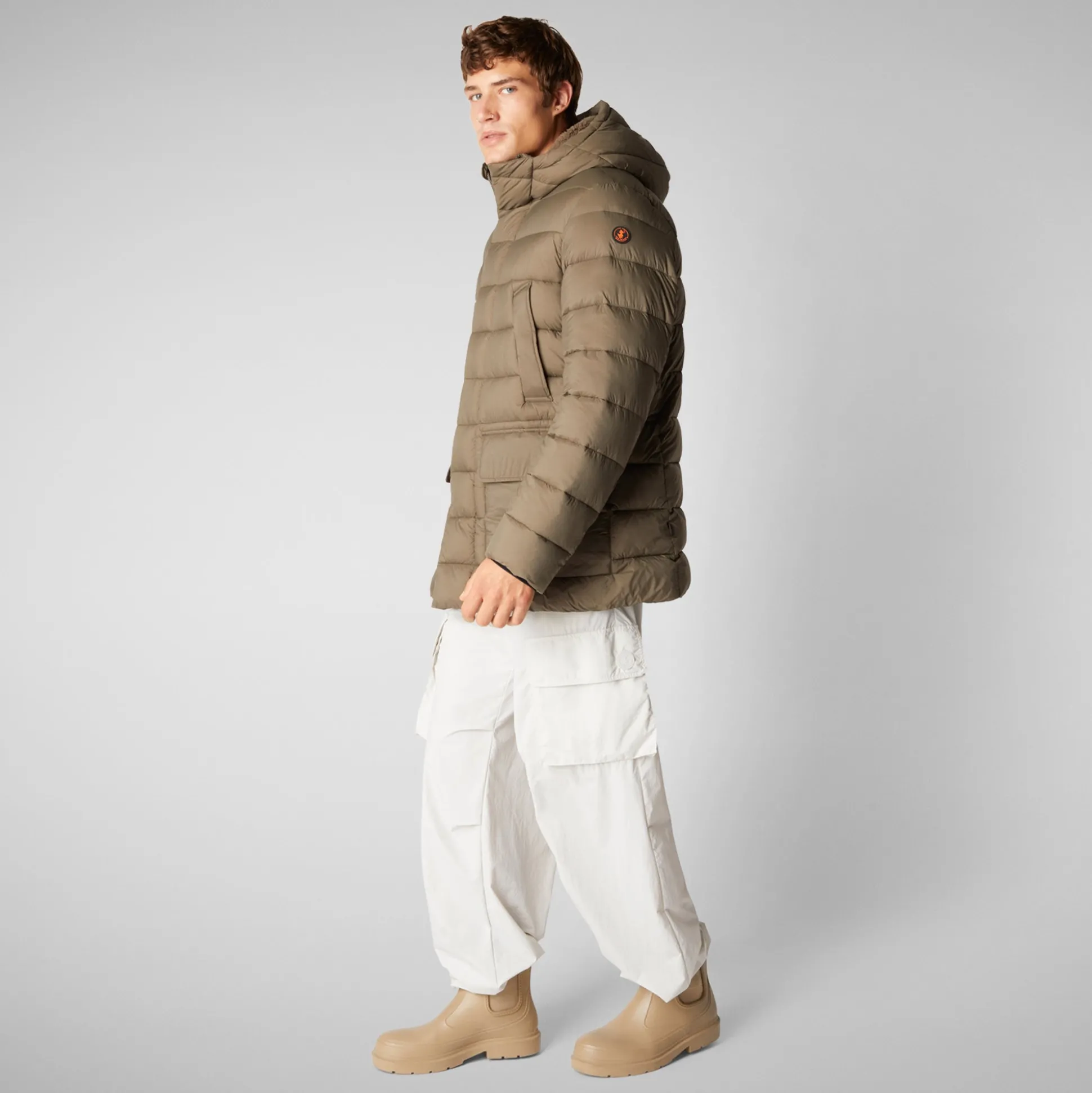Men’s animal free hooded Animal free Puffer jacket Lyle in mud grey