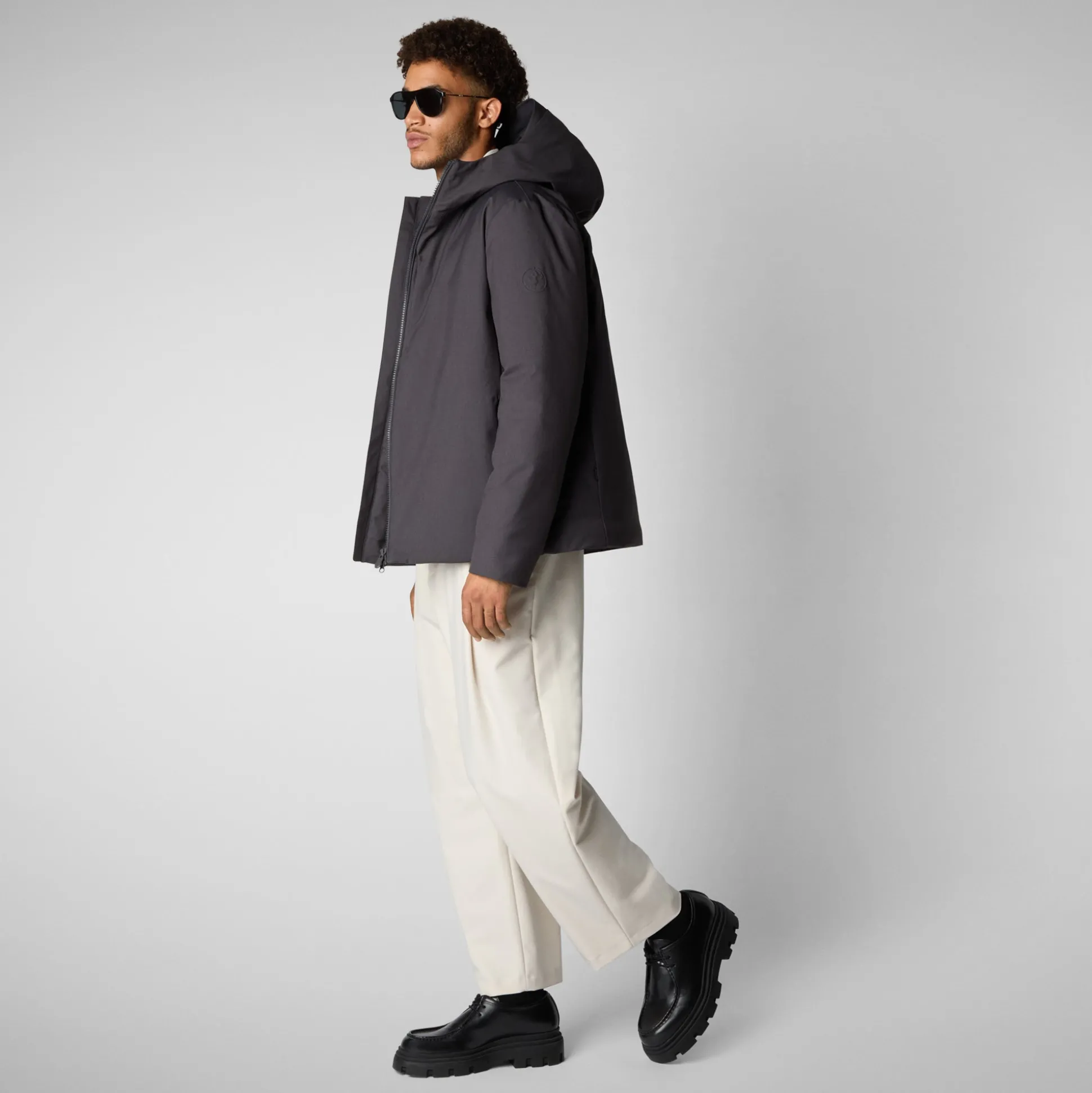 Men’s animal free hooded jacket Barnaby in CHARCOAL GREY MELANGE