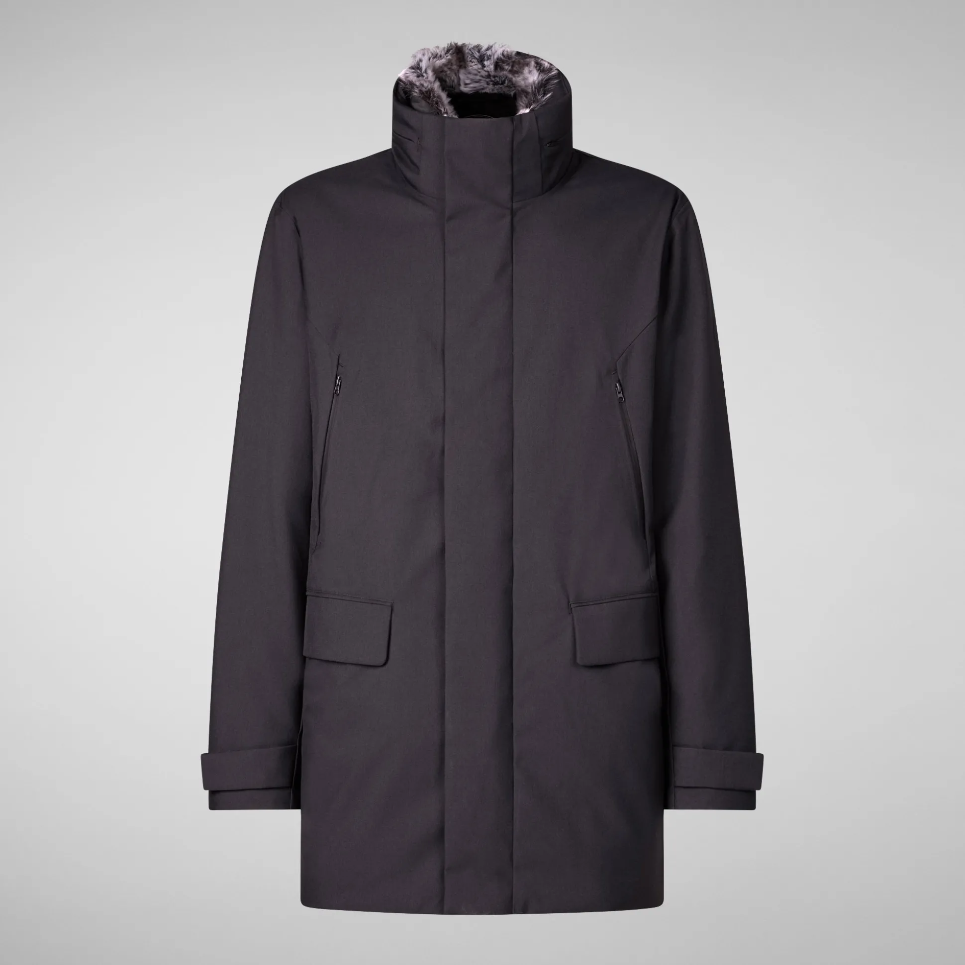 A blend of elegance and function, our Ambrose coat is designed from a new wool-look fabric. This smart piece features a foldaway hood, taped seams on the top, and a plush faux fur lining on the high collar. Two flap pockets, two high zippered pockets, and three inside pockets provide ample space for your essentials. Signature details include a round badge on the back and an embossed logo on the sleeve.