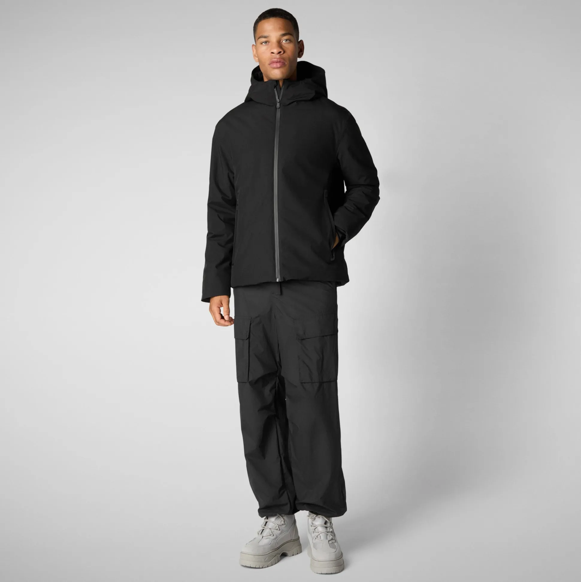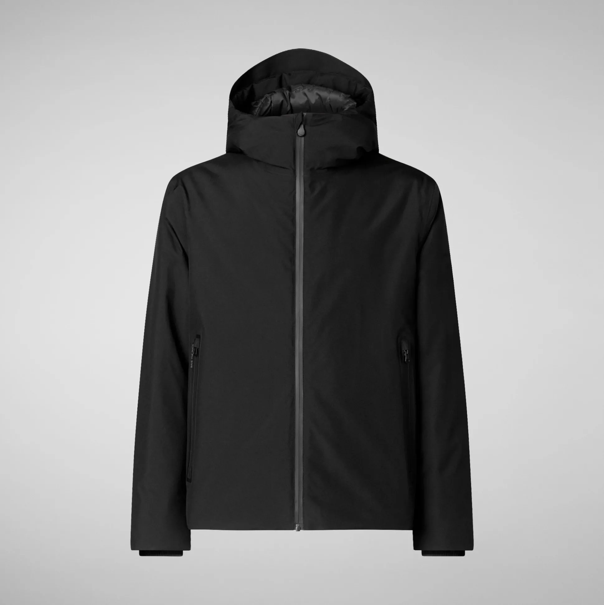 Stay warm and dry with the Flynn padded jacket, featuring an adjustable drawstring hood, heat-taped seams, and a two-way water-resistant zipper with a custom pull. The design includes waterproof pockets with a tonal print, an adjustable drawstring hem, and inner Lycra cuffs for added comfort and protection. Signature details such as the tonal logo on the hood and the embossed Save the Duck print on the left sleeve complete the look.