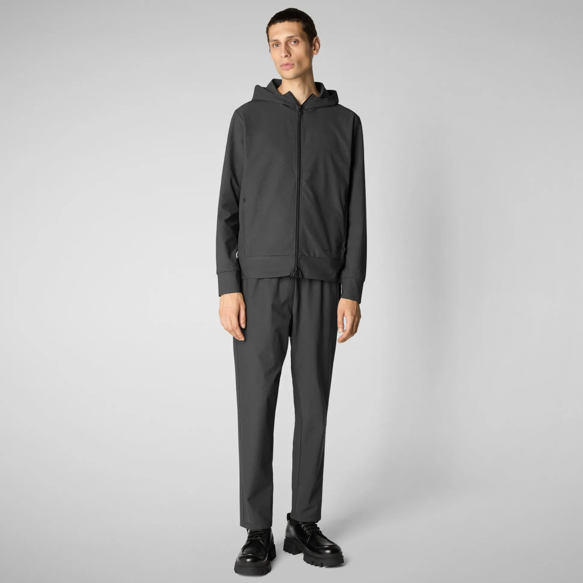 Step into comfort and style with the Luiz slim fit jacket, a standout piece in the Smartleisure collection. Designed with breathable, ultra-thin, and four-way stretch fabric, it ensures ease of movement. The jacket comes with a handy zipper featuring custom pulls, a cozy hood, and zippered side pockets for practicality. Its sleek design, accentuated by an embossed logo at the bottom, pairs perfectly with matching pants for a lightweight, stylish ensemble suitable for any time of day.