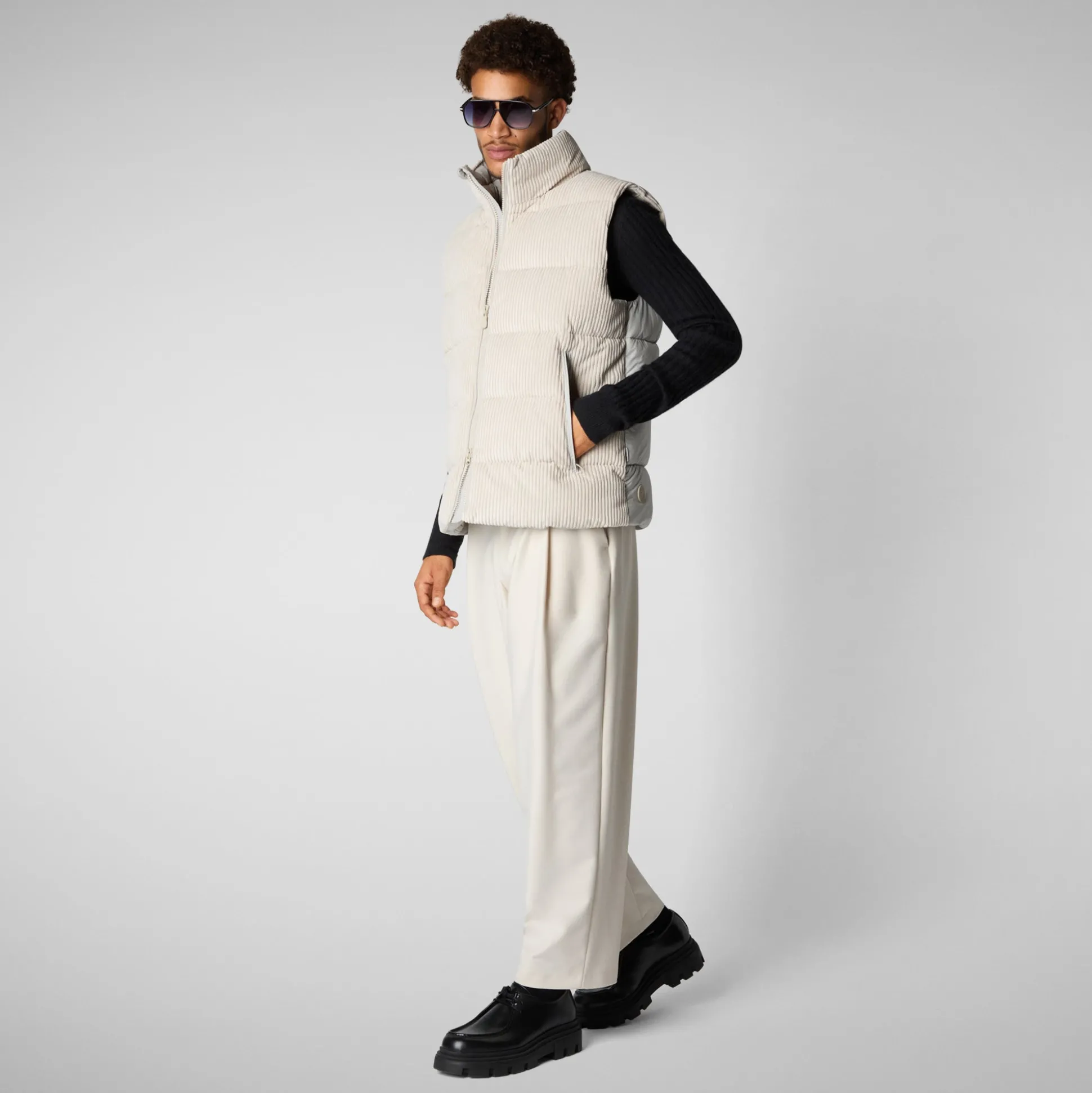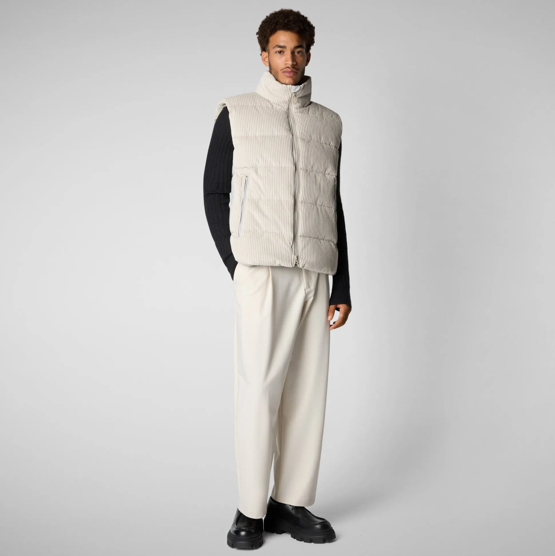 Classic meets modern with the Euryops vest. The sleeveless style has a high neck and is padded with PLUMTECH®, an animal free alternative to down. Fully quilted, it has a corduroy outer for a retro-tinged effect.