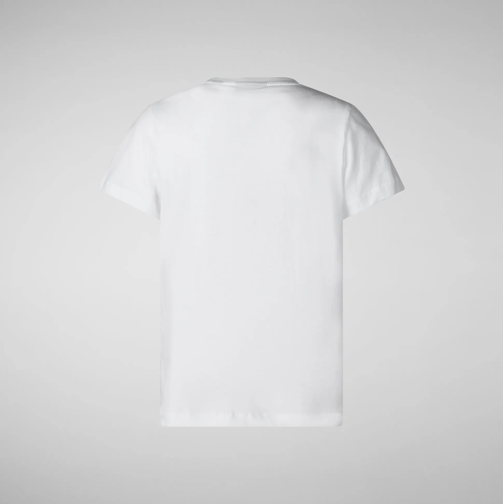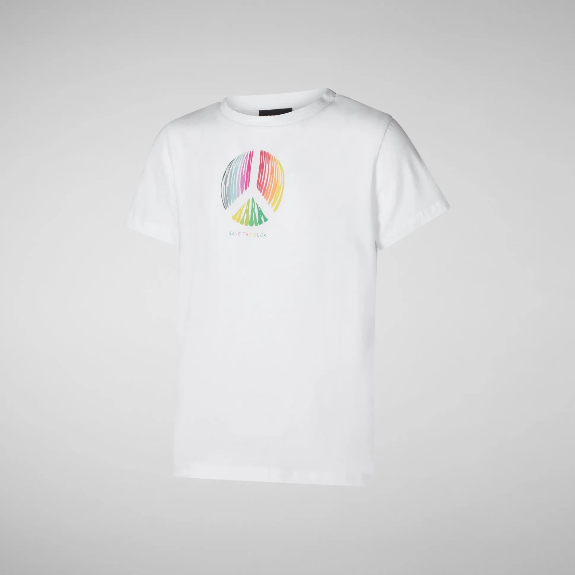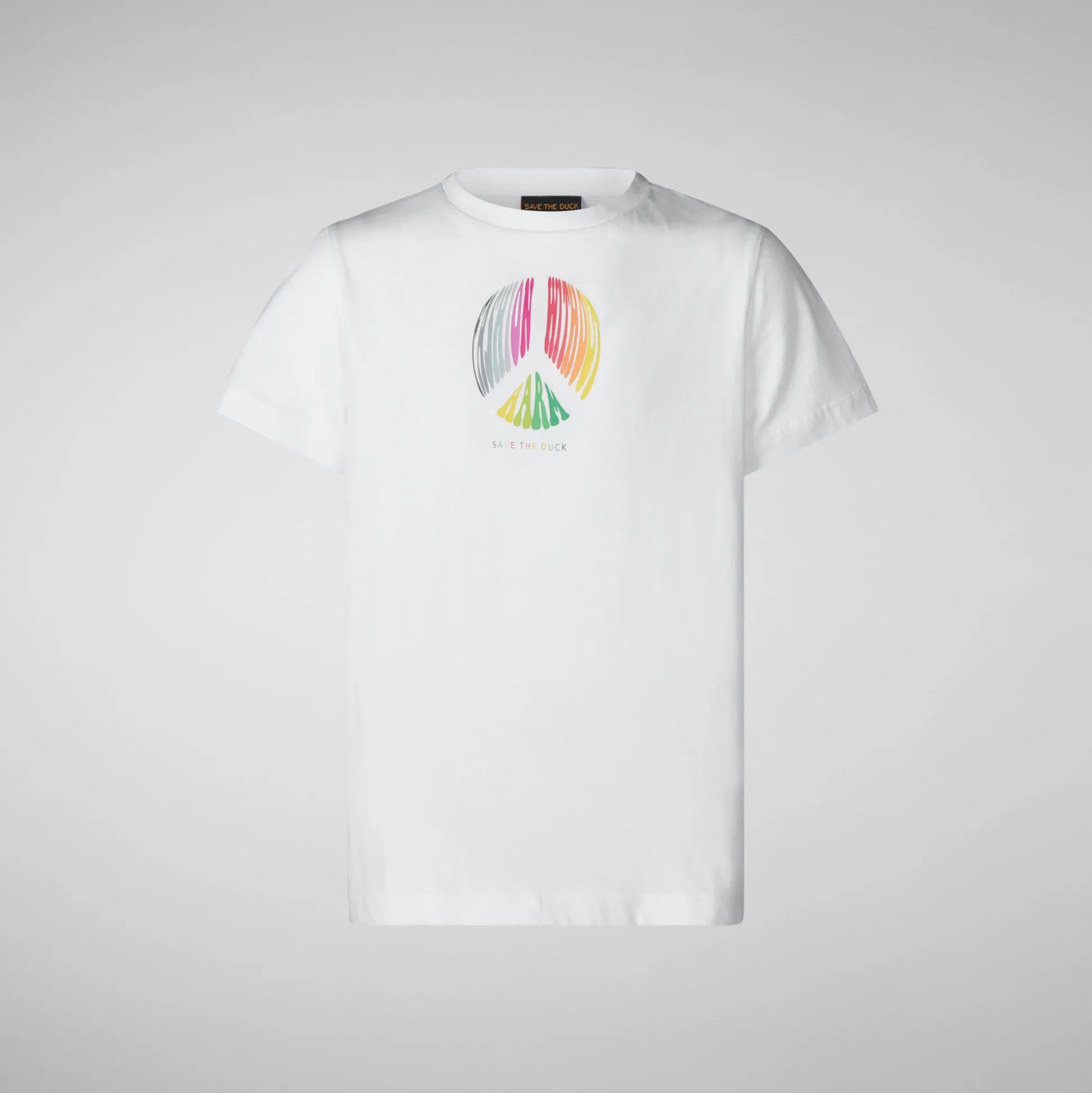 Our Cal T-shirt for kids makes a bold statement with its colorful ‘Fashion Without Harm’ lettering forming a peace symbol. Made from soft organic cotton jersey, it features a classic crewneck cut and short sleeves, combining style with comfort for young trendsetters.
