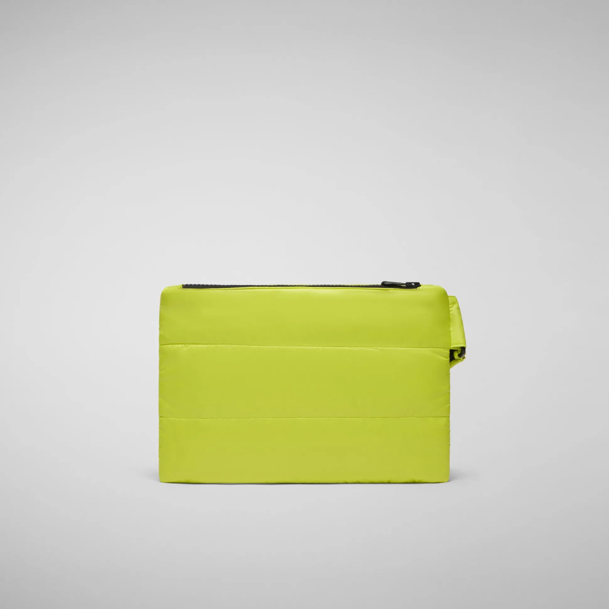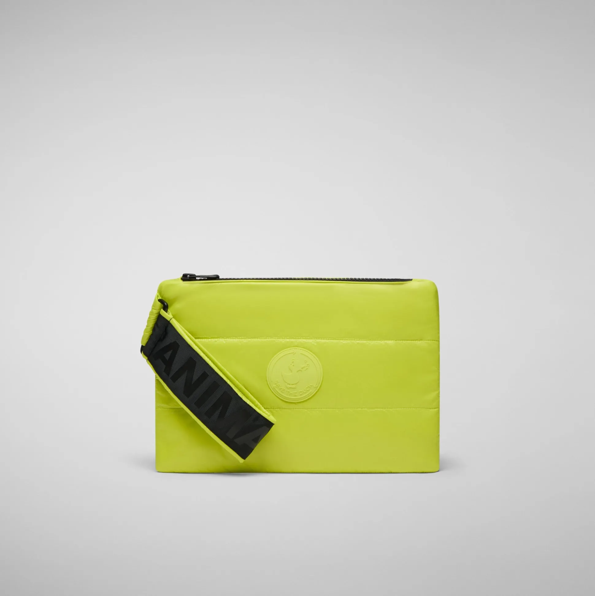Keep your essentials secure on the go with our Cocos pouch. Made from quilted fabric with a lacquered finish, the design features a practical wristlet strap with “ANIMAL FREE” printed on it. Its rectangular shape and top zip opening provide easy access, while multiple interior pockets ensure organized storage.