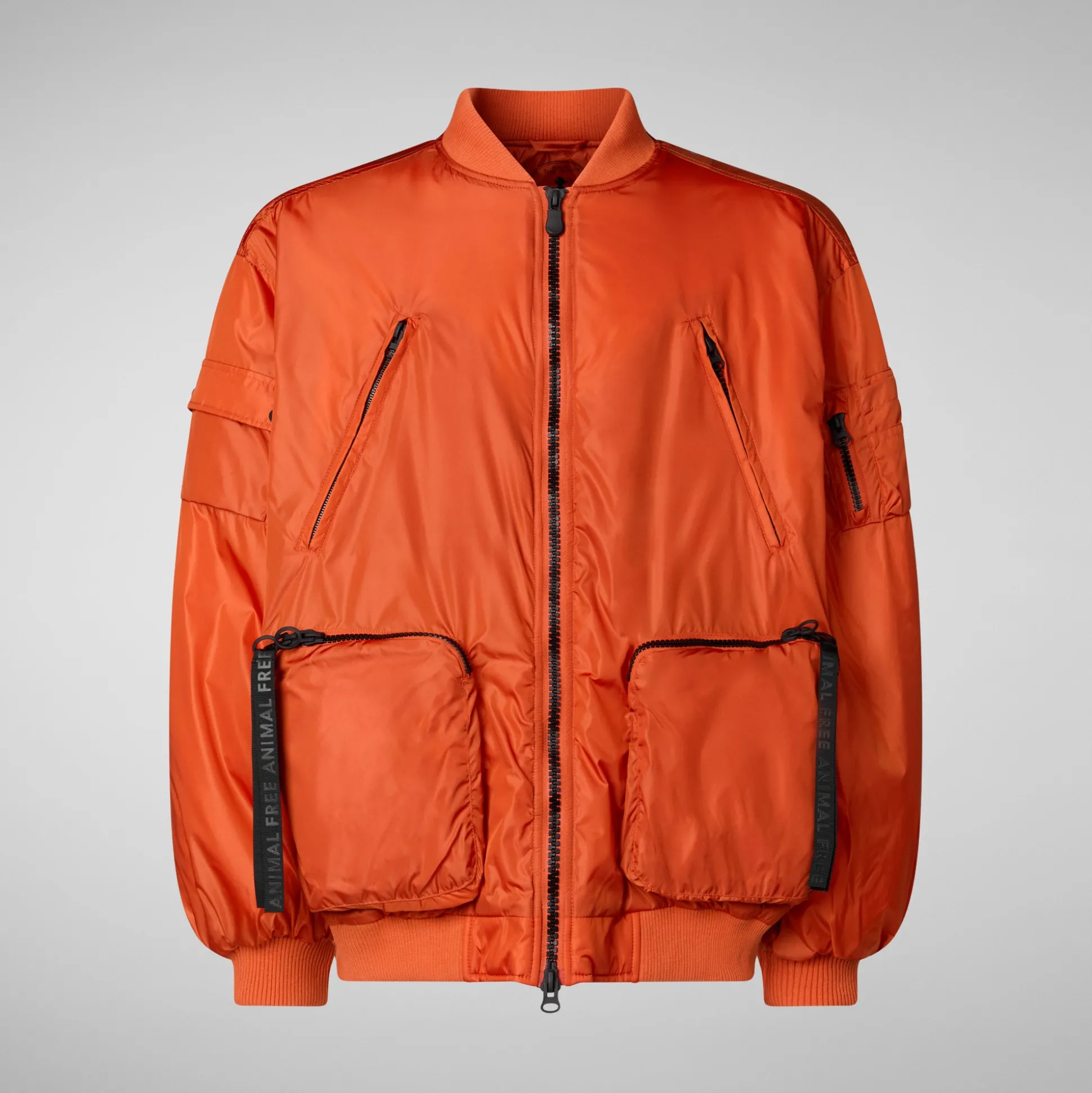 A bomber jacket with an oversized fit, the Usher jacket is your key to effortless cool this season. This padded design has insulating ribbed trims, industrial-style wide pockets and a zipped front. A grosgrain zip strap is printed with our “ANIMAL FREE” logo.