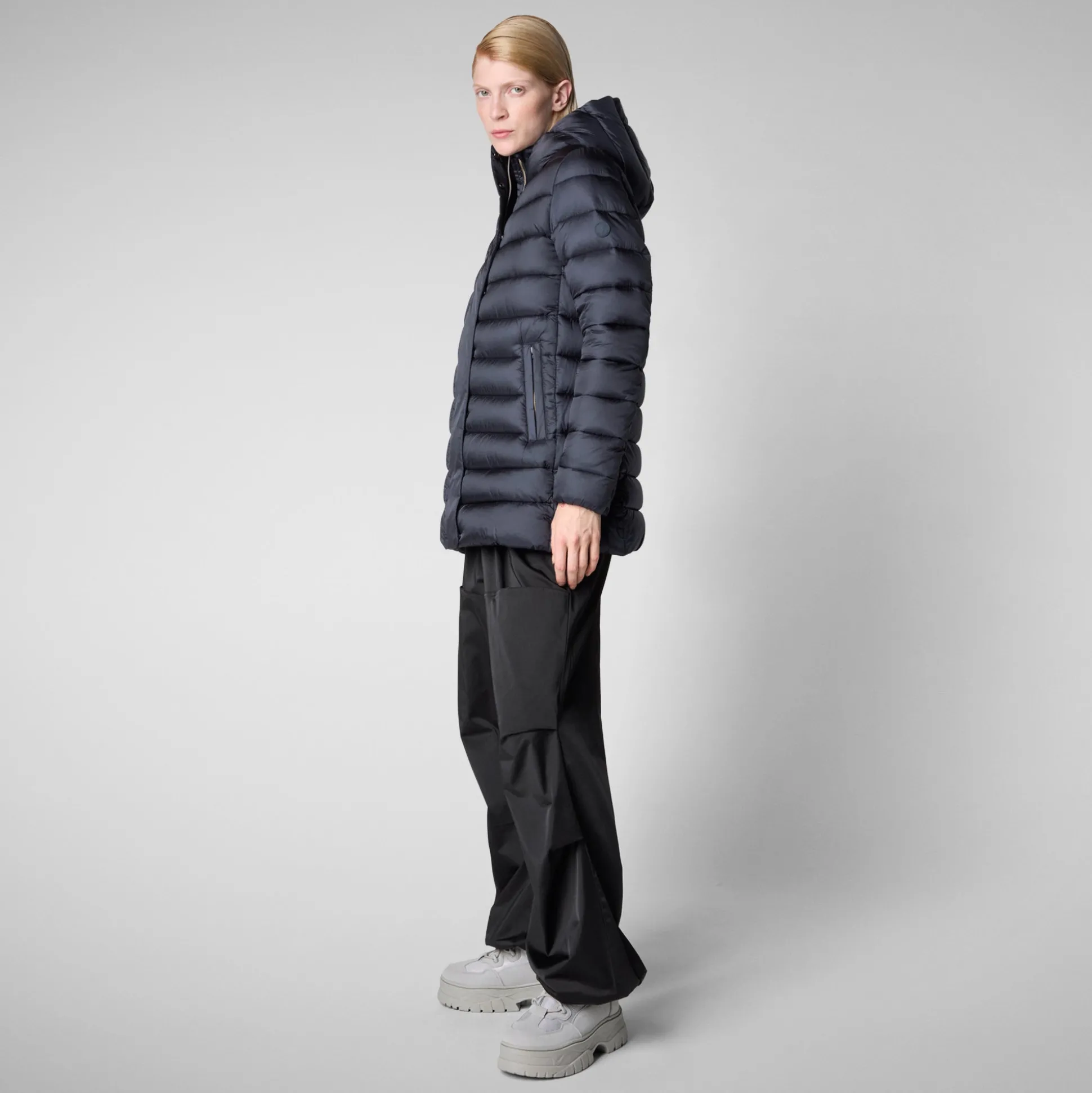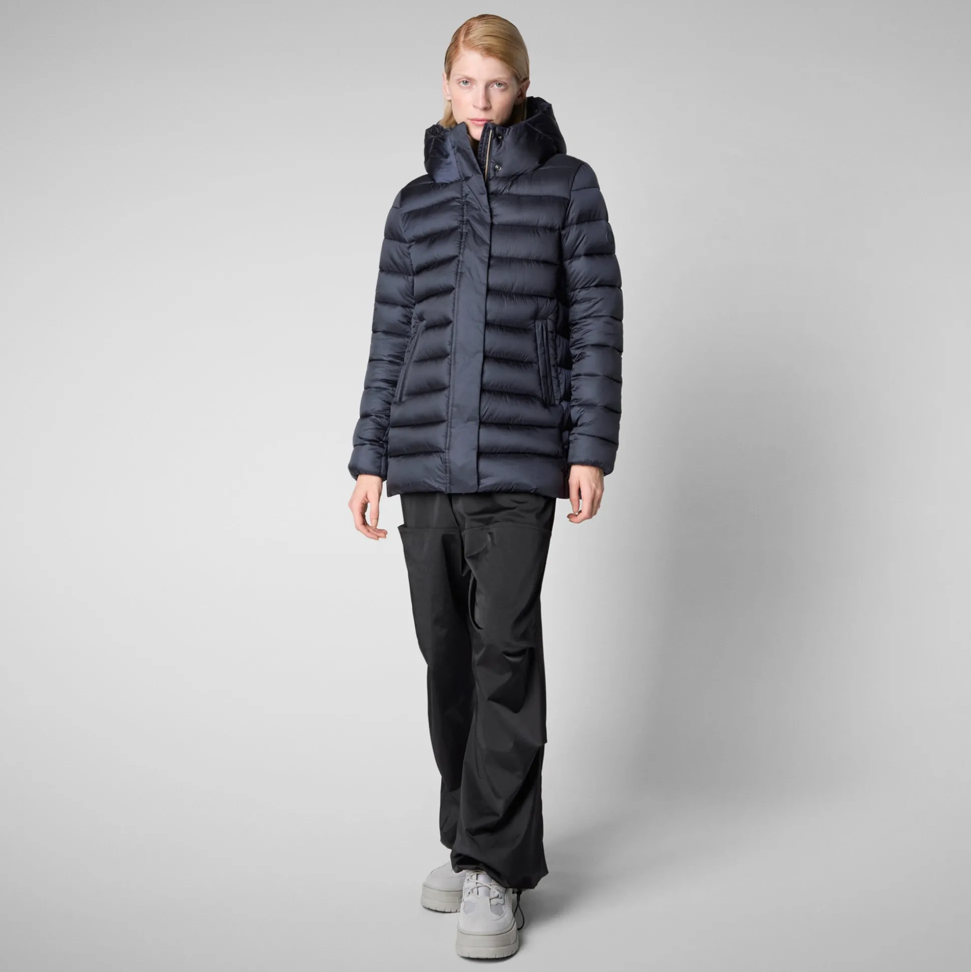 Women’s Hooded Animal free Puffer Coat Drimia in Blue Black