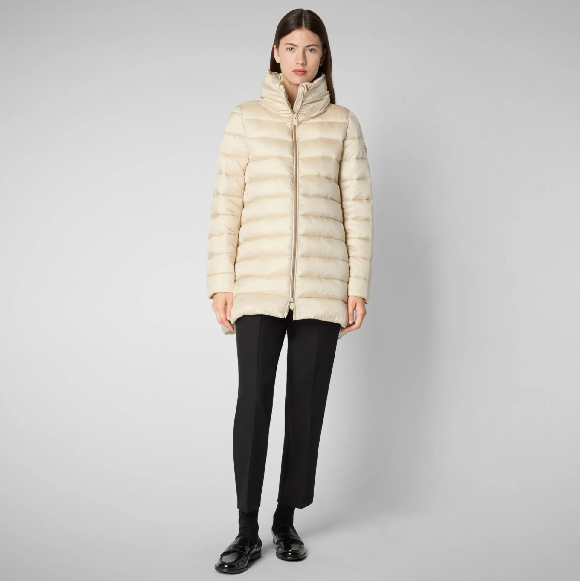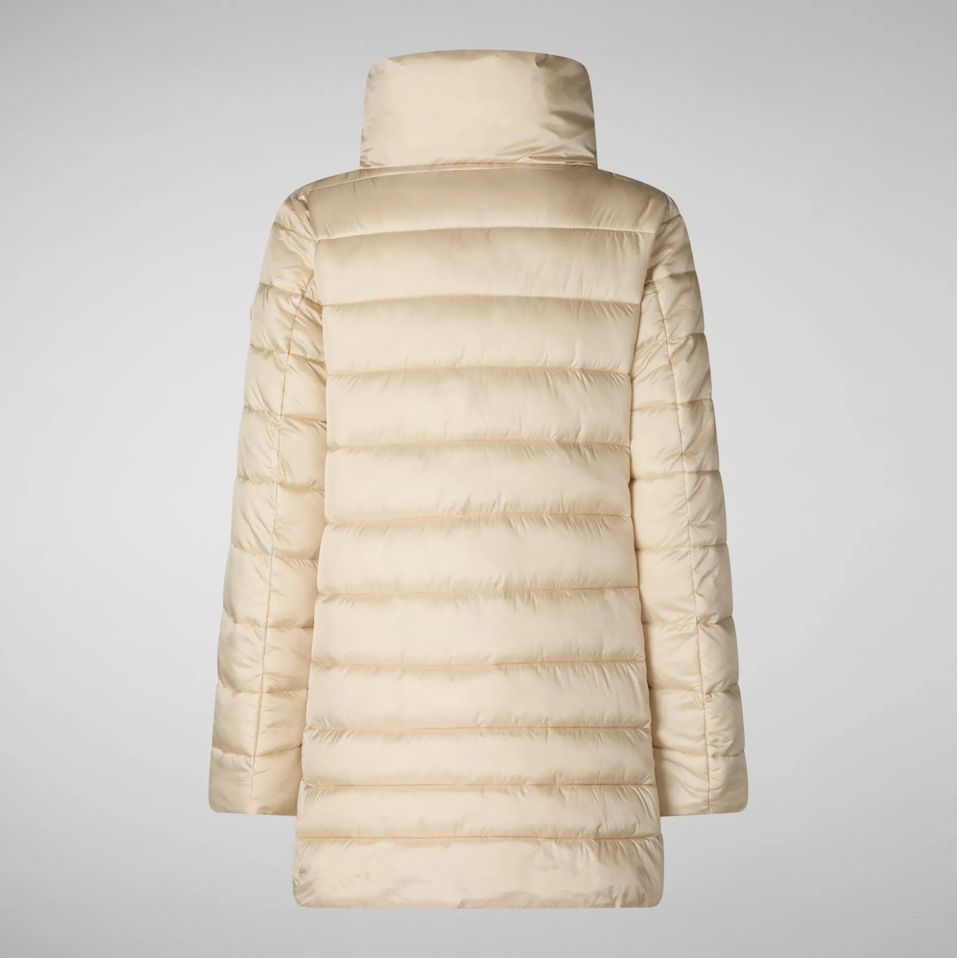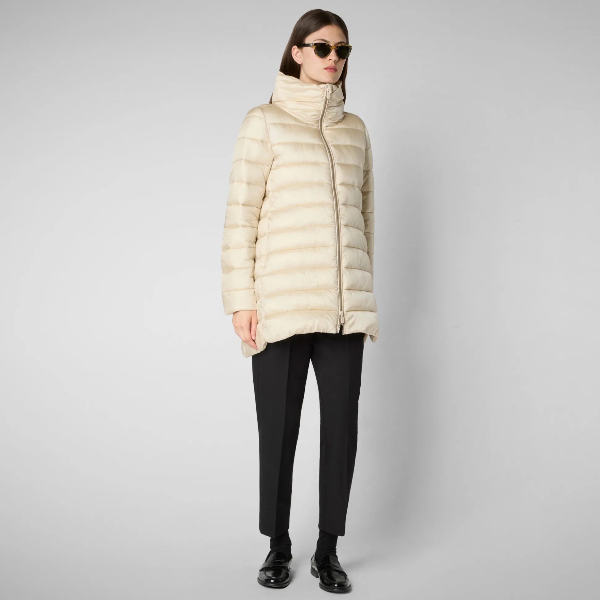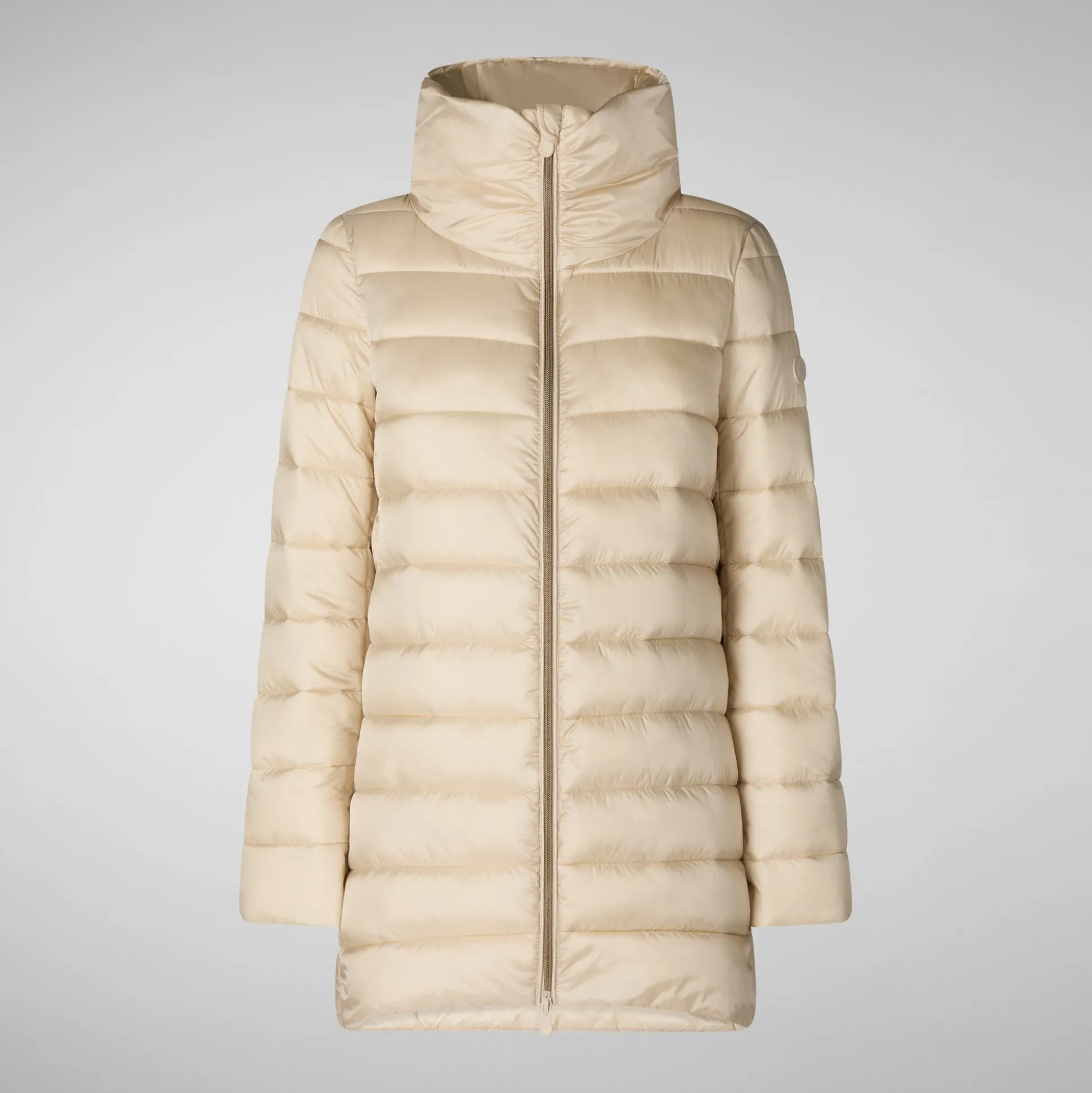 Women’s Hooded Animal free Puffer Coat Lydia in shore Beige