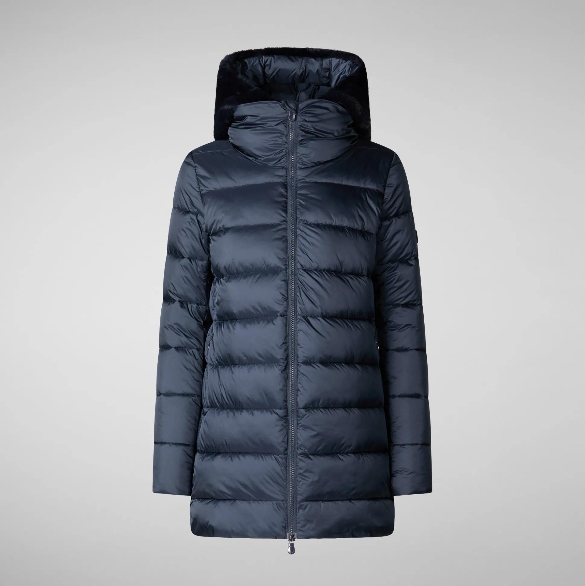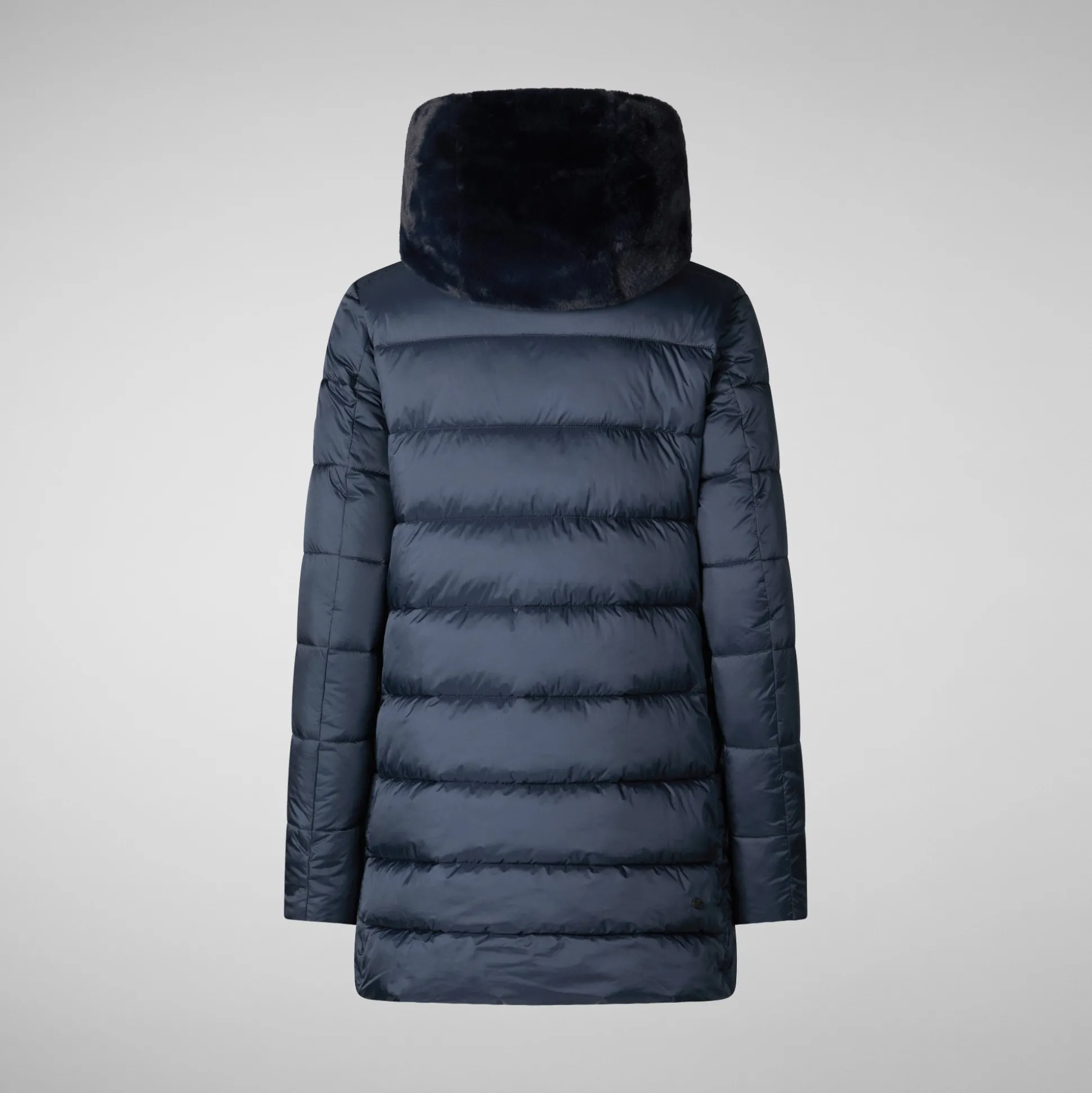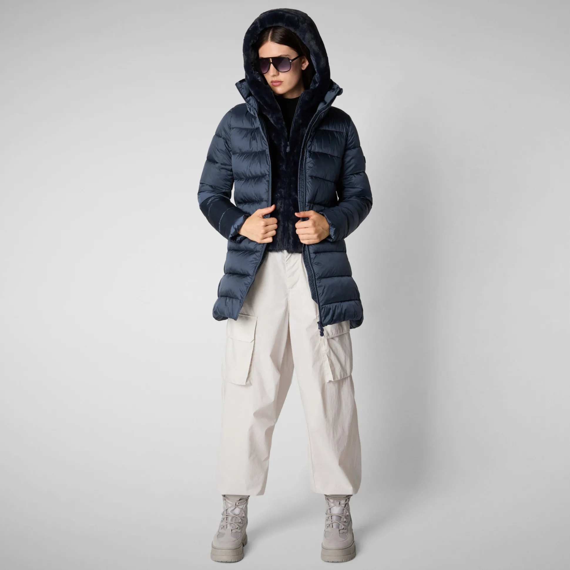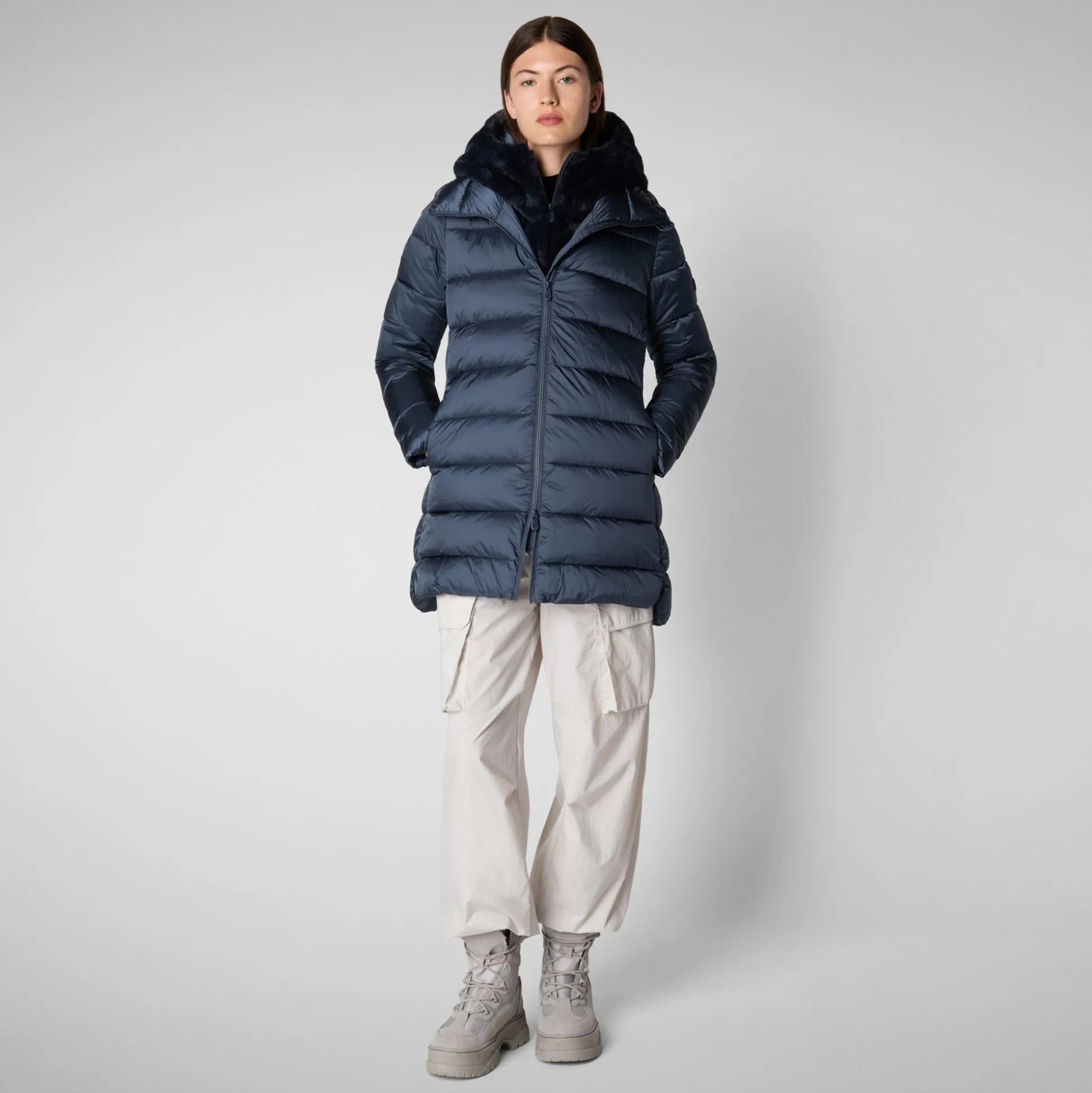 Women’s Hooded Animal free Puffer Coat Matilda with Faux Fur in Night Blue