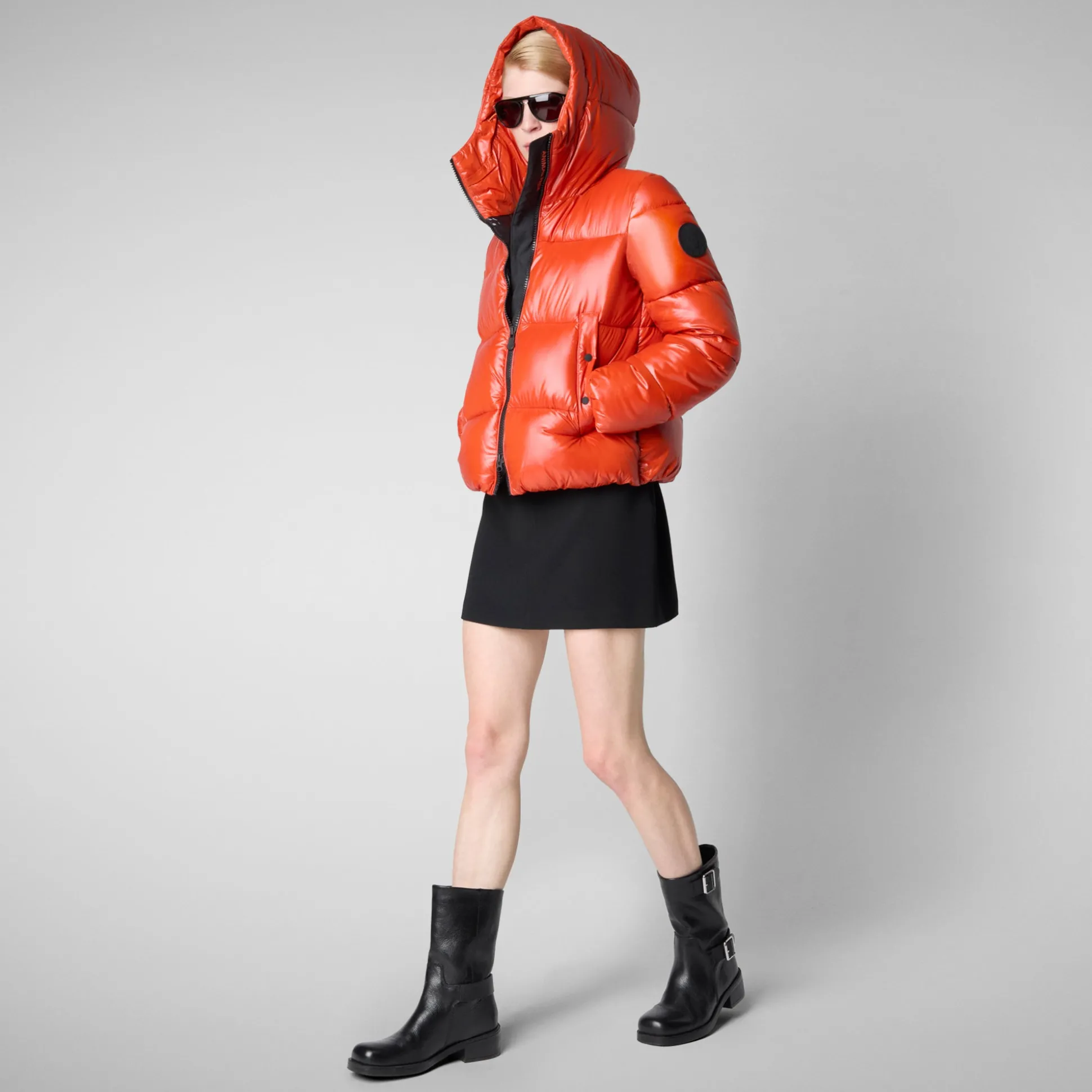 Women’s Hooded Animal free Puffer Jacket Biddy in Maple Orange