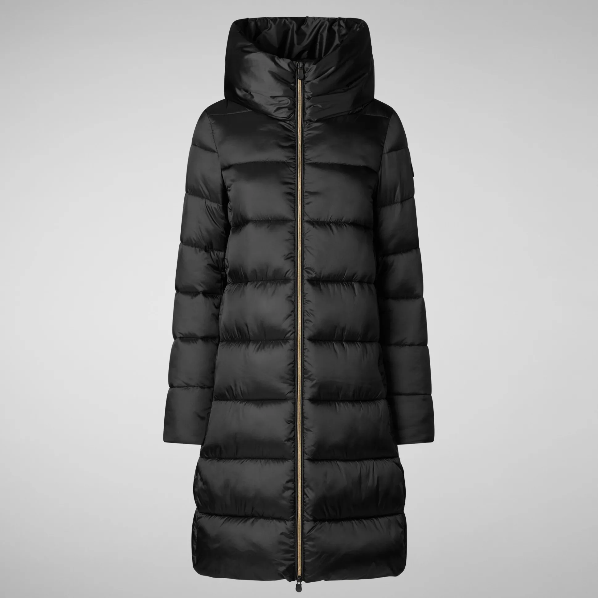 With a longline silhouette padded with animal free down, our Lysa puffer showcases a feminine design made from shiny fabric. It features an insulating high neckline that can hold the hood when it’s not in use, and a practical zipped front. The logo is presented in a subtle tone-on-tone style.