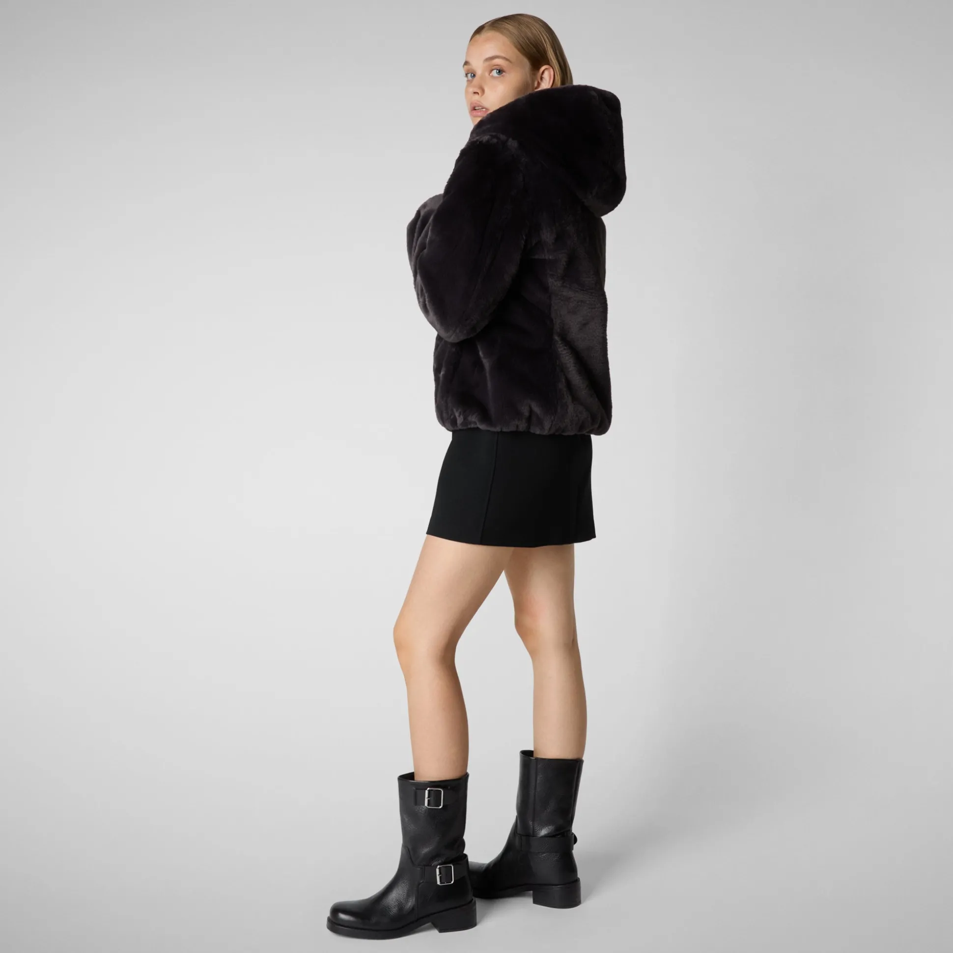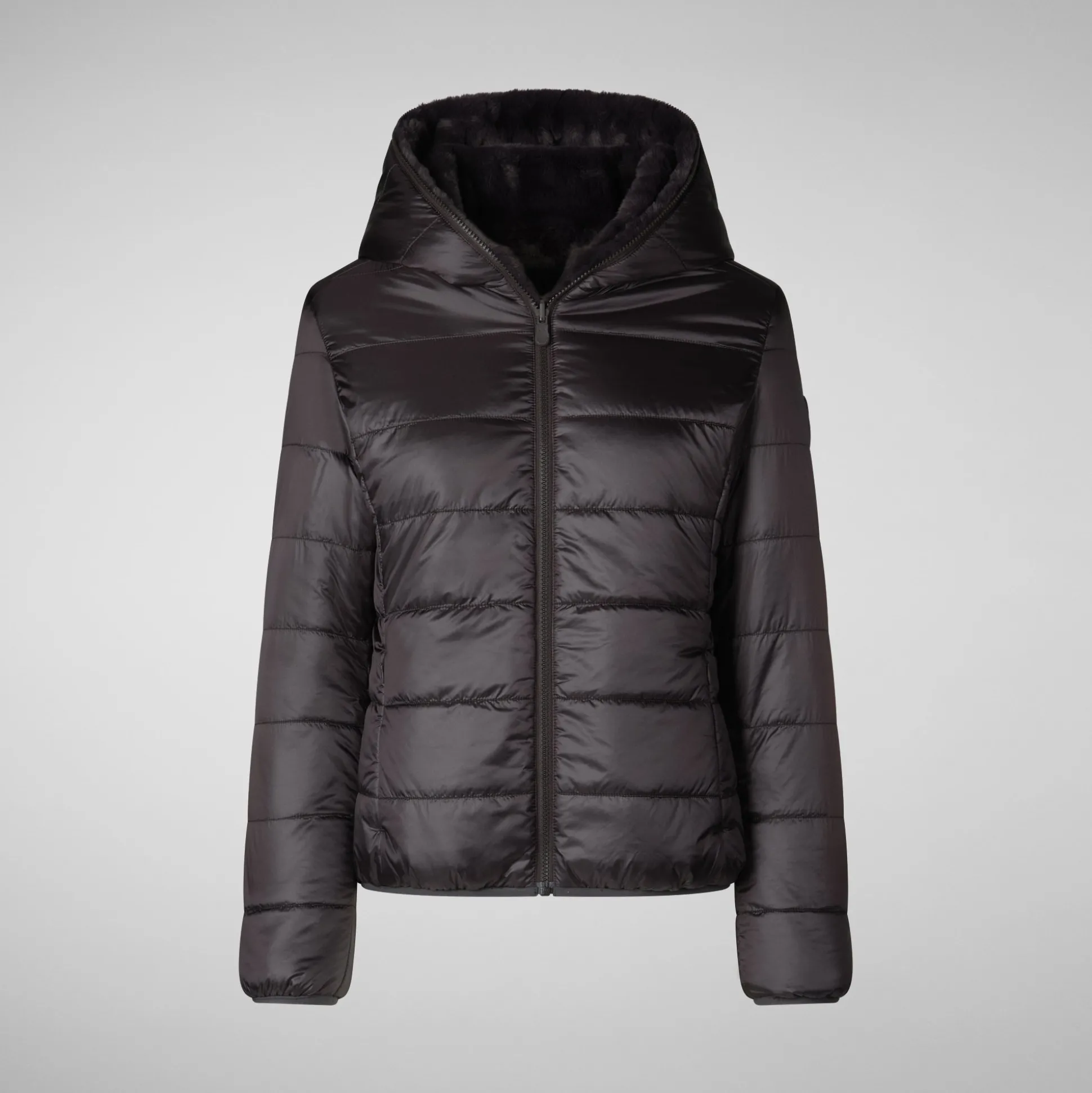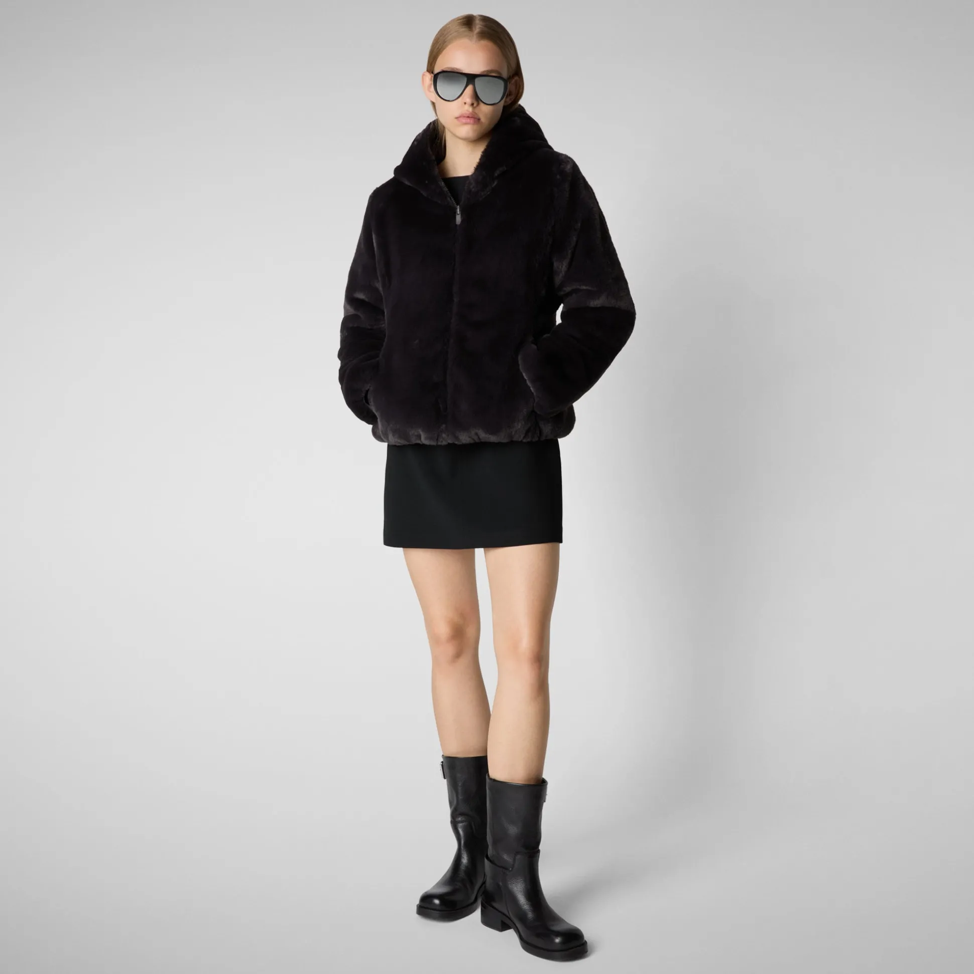 Laila is a versatile reversible hooded jacket, offering a stylish quilted side and a cozy faux fur side. Featuring elastic trims at the bottom and cuffs for enhanced comfort, it’s closed by a central plastic zipper with a reversible slider and custom zipper pull. With low pockets on both sides and a matching round logo, this jacket combines functionality with chic design.