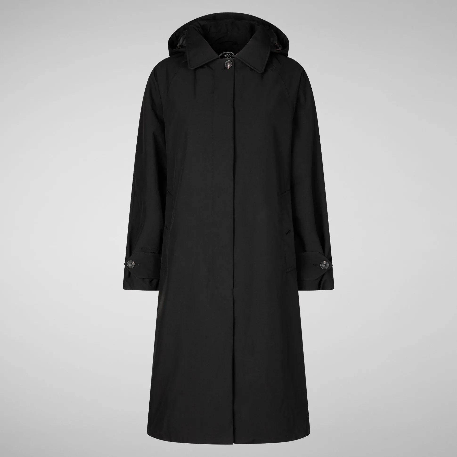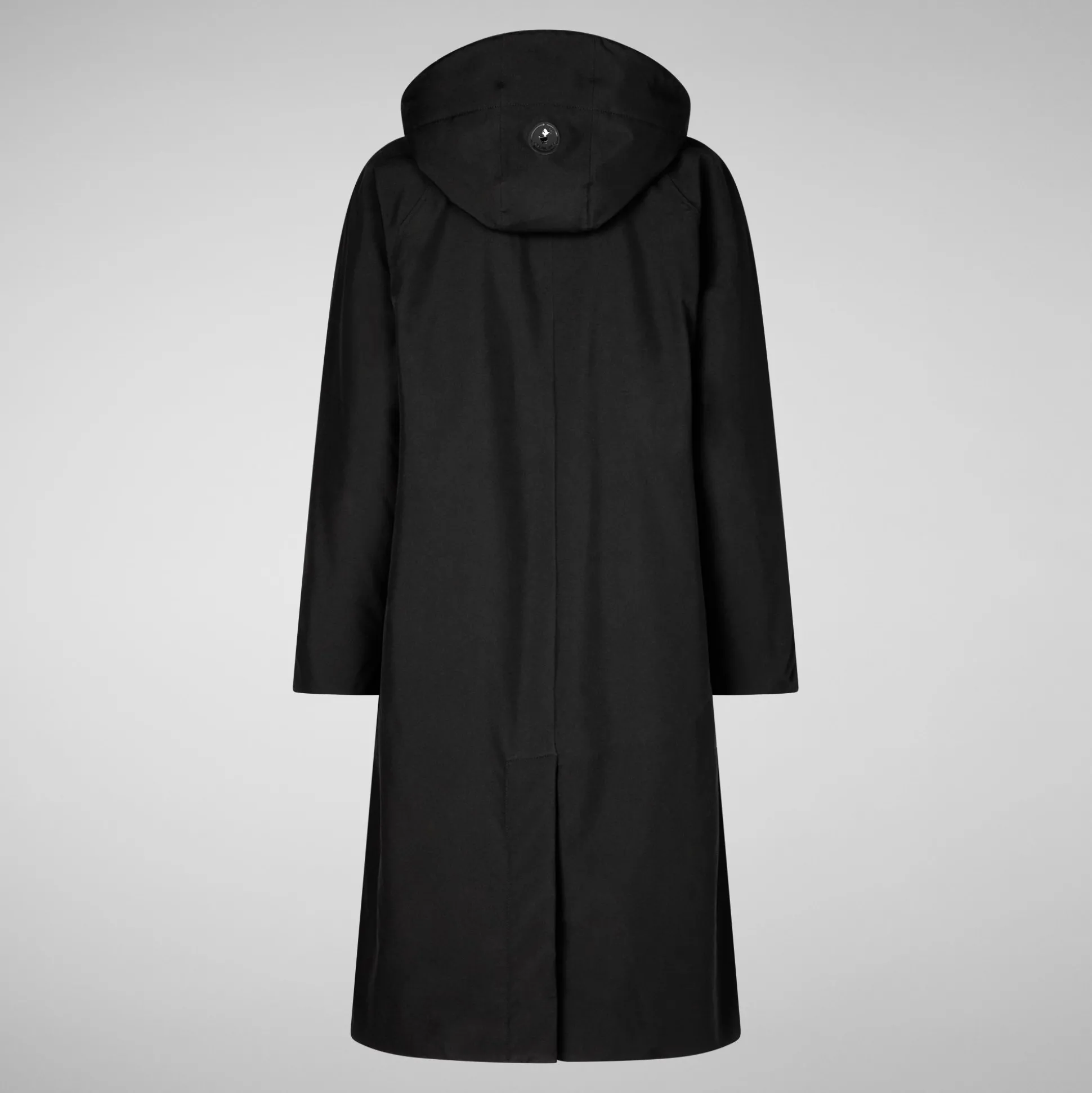 Embrace rainy days with the Zoey raincoat, featuring a detachable hood and raglan sleeves for comfort and mobility. Partially taped seams and insulating padding ensure you stay warm and dry. The main opening is secured with faux horn buttons and a two-way zip, while trench welt pockets offer practical storage. An embossed “Save the Duck” logo on the left sleeve adds a signature touch.