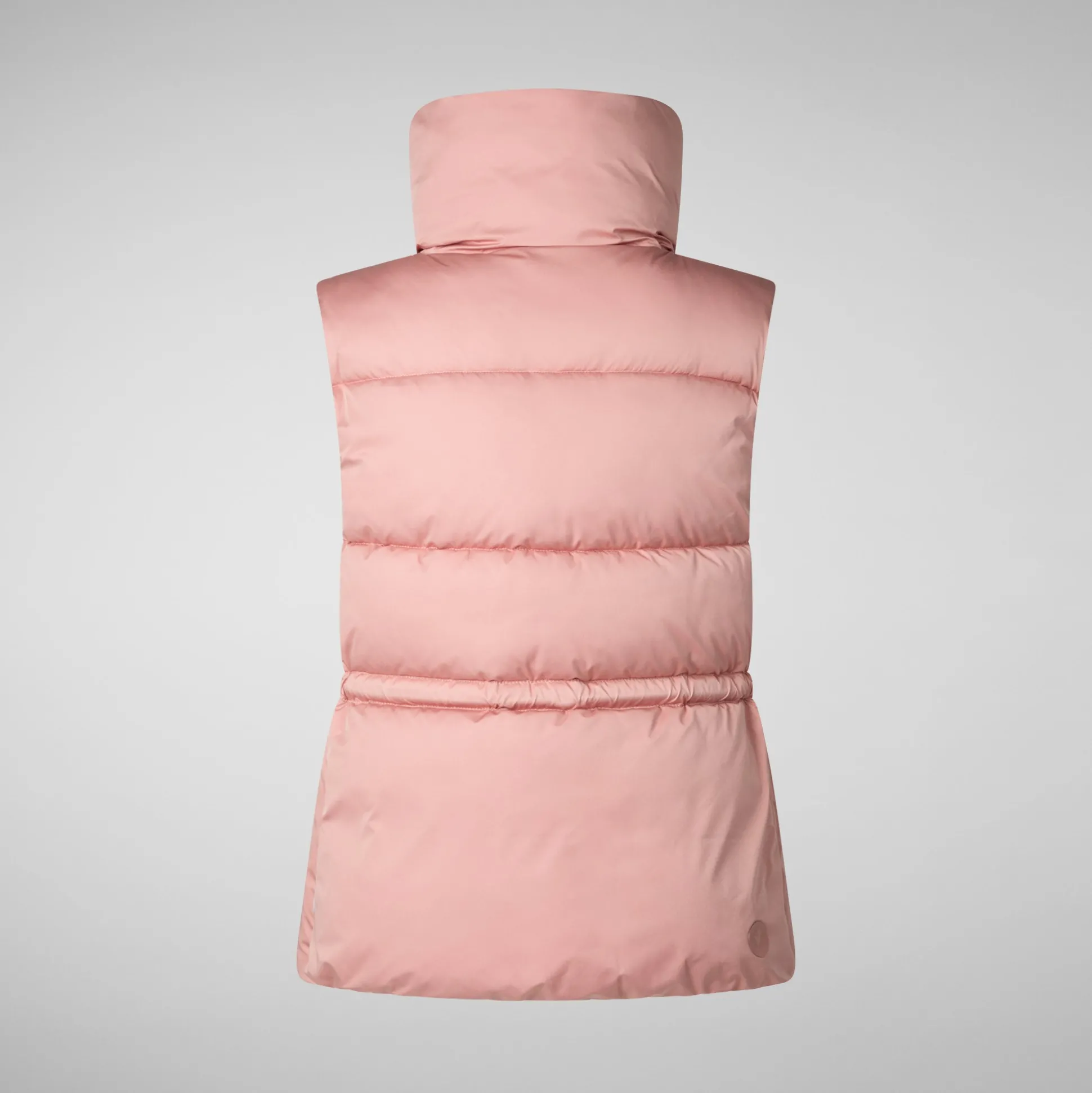 Looking for a reliable companion for layering season? Look no further than our Ren puffer vest, where animal free comfort meets recycled materials. Accented by light gold details, this design features a high neck fastened by two snap buttons. The adjustable drawstring at the waist provides a snug, personalized fit.