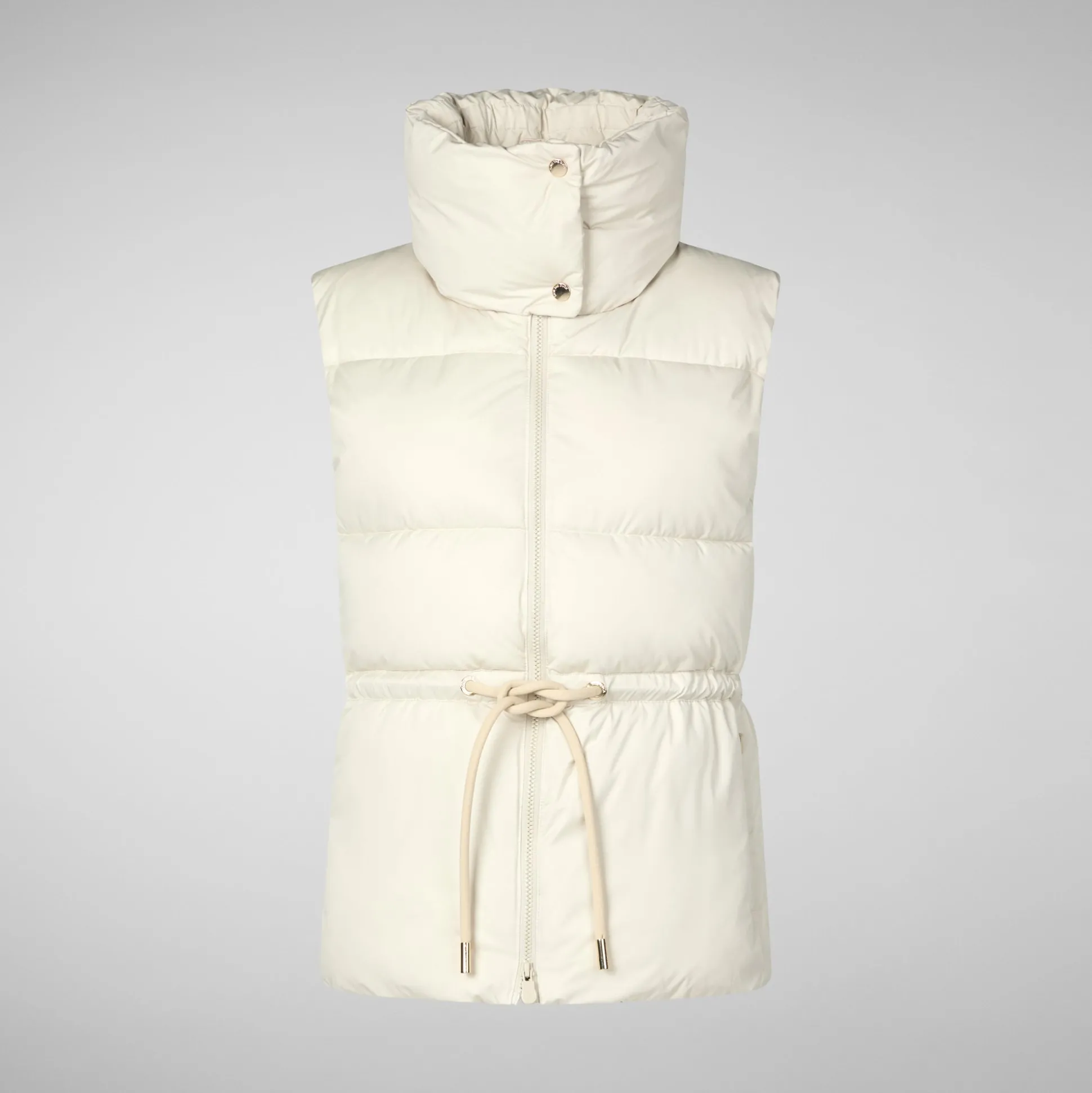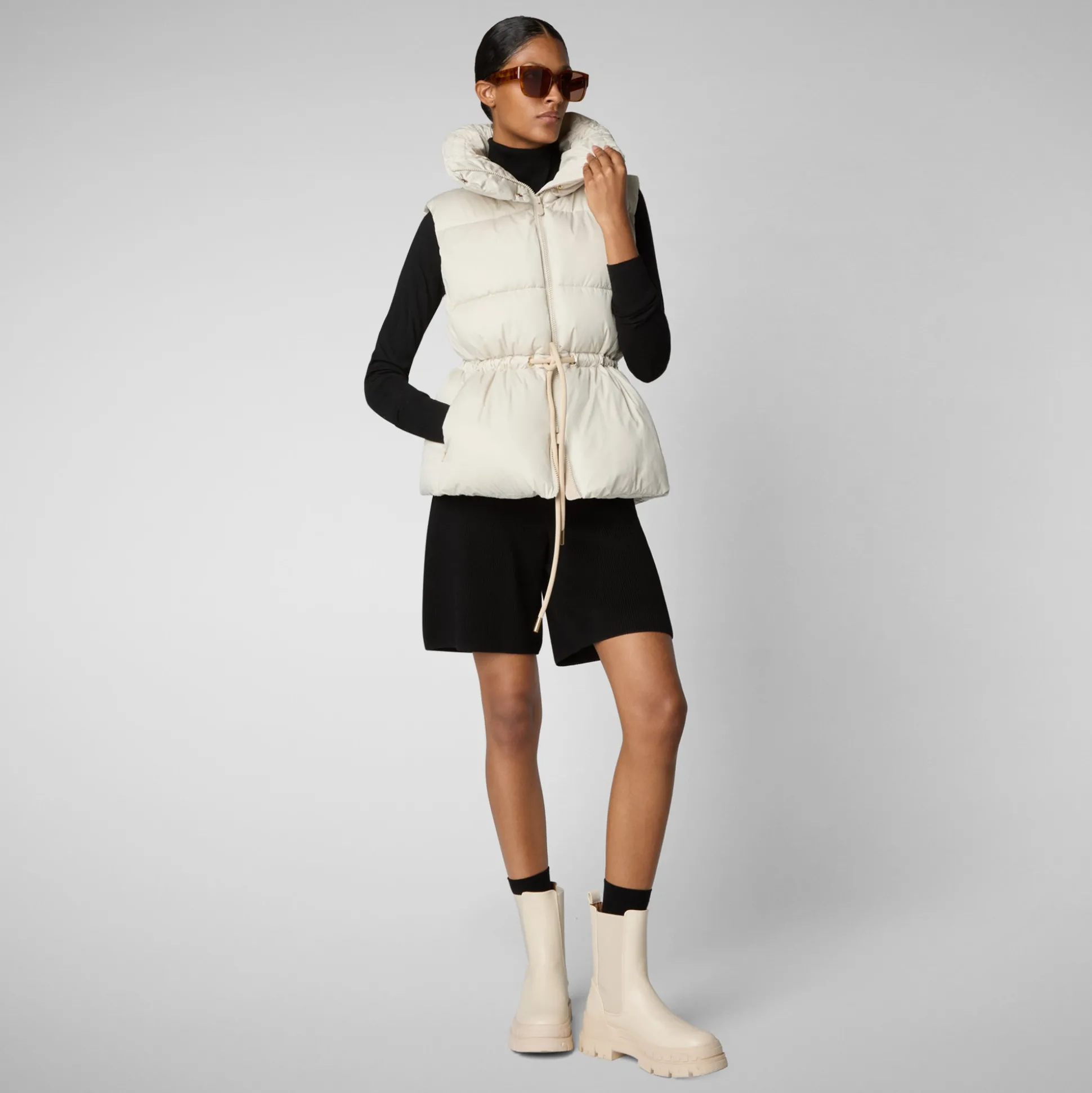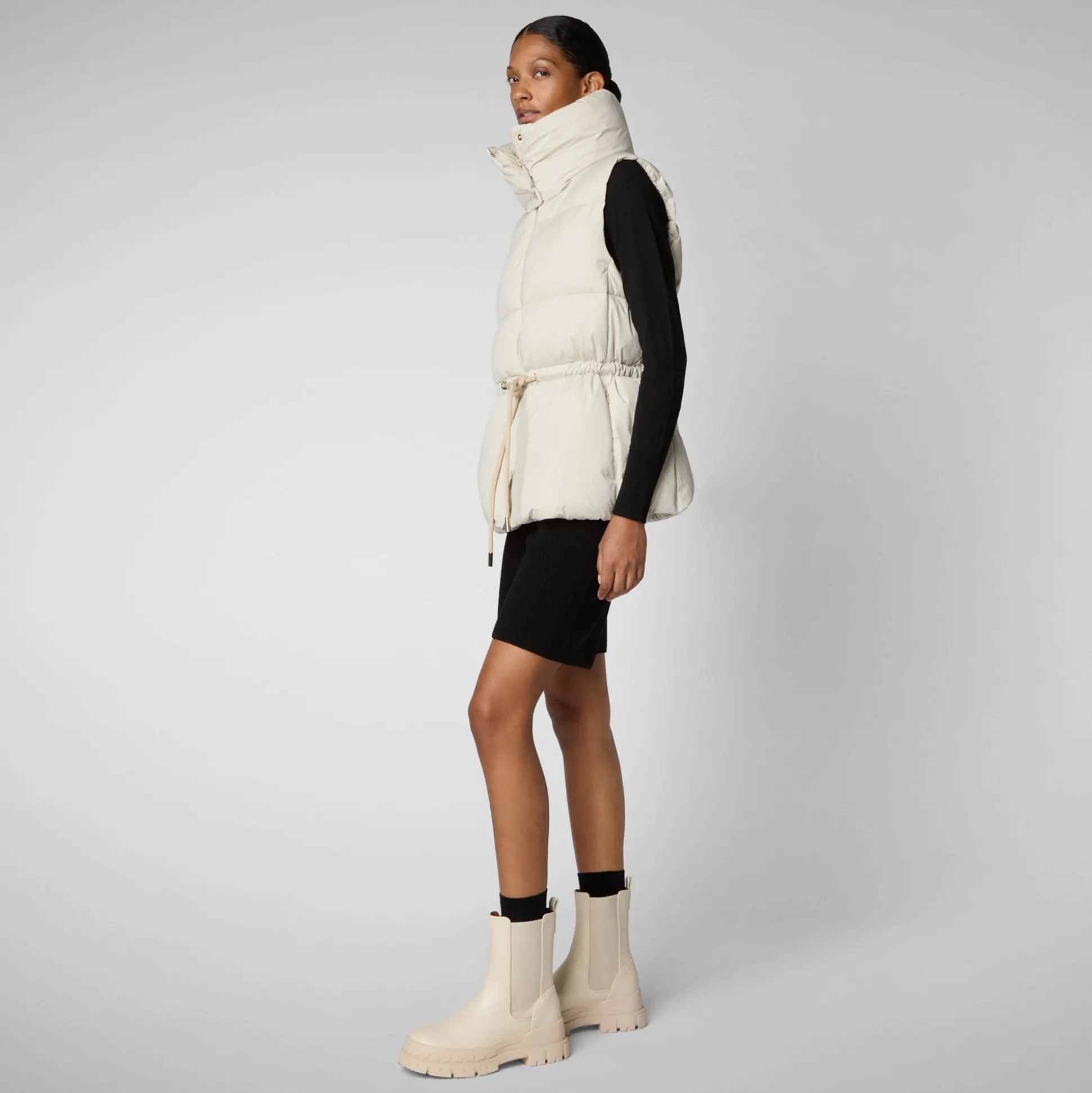 Looking for a reliable companion for layering season? Look no further than our Ren puffer vest, where animal free comfort meets recycled materials. Accented by light gold details, this design features a high neck fastened by two snap buttons. The adjustable drawstring at the waist provides a snug, personalized fit.
